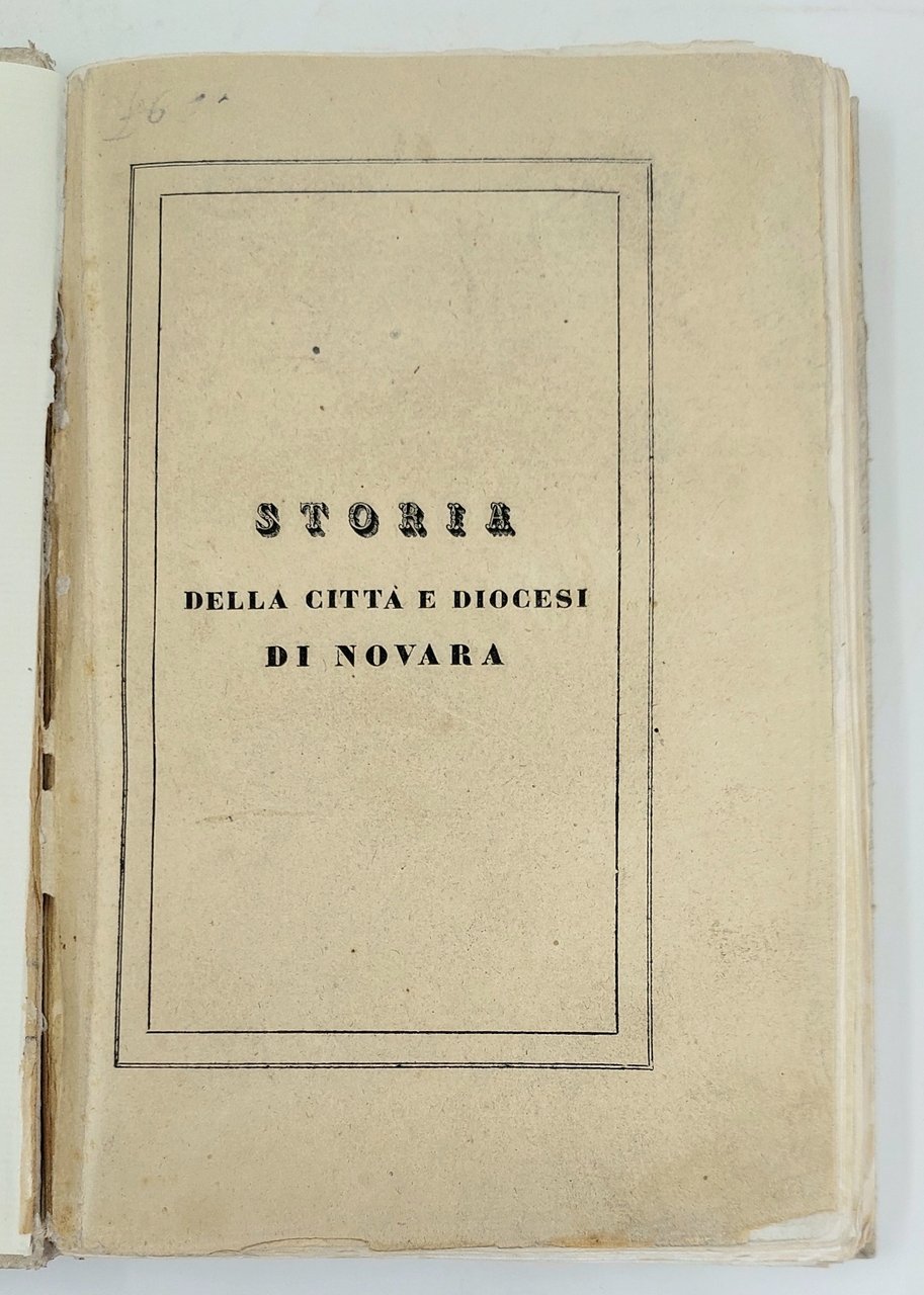 >in-8, pp. (4), 391, (3), legatura in carton. rustico coevo, tit. ms. al dorso, brossura edit. cons. Prima edizione di quest'opera in cui "l'autore rifonde quanto aveva già pubblicato anteriormente in diversi saggi" (Finazzi). Oltre la storia civile dai tempi antichi ai primi decenni del secolo XIX, contiene quella ecclesiastica, gli usi e costumi, la legislazione statutaria, le arti, le lettere e le scienze ed in fine un "Codice Diplomatico" e l'importante "Elenco degli scrittori di cose novaresi" (pp. 375-383). L'autore (Novara 1811 - Milano 1881), storiografo e letterato, "fu il primo a scrivere una intiera storia di Novara" (Finazzi). Ottimo esemplare, a pieni margini. Manca a Lozzi. Finazzi, Bibliografia novarese, p. 70 e 83. Manca al Manno-Promis.