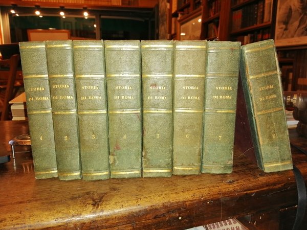 In-8 (17 cm) 8 voll. XIV (2) 550; (4) 592; (6) 687 (11); (6) 810; (6) 776; (4) 852; (6) 895 (1); (6) 836. Occhietto con titolo: "Nuova collezione di opere storiche". Mezza tela, con piatti rivestiti di carta marmorizzata. Cerniera del piatto anteriore dell'ultimo volume allentata.