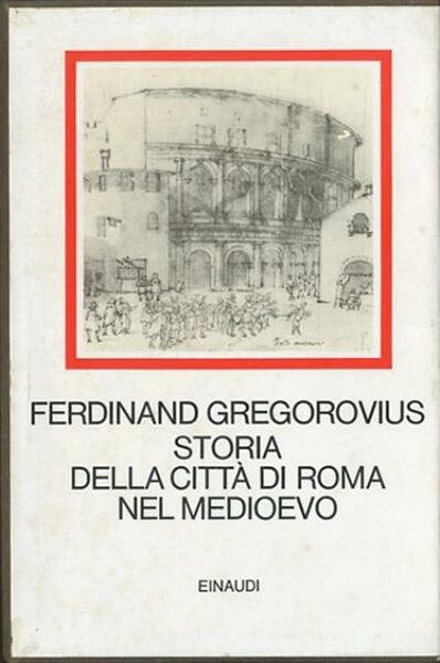 3 v. (XC, XXIV, XXI, 2583 p. complessive), [29] c. di tav. : ill. ; 22 x 14 cm. I millenni. Questa storia di Roma che va dalla decadenza dell’impero alla metà del Cinquecento è un grande affresco storico-narrativo, di notevole valore letterario. Ignorata dagli ambienti universitari per via della rinuncia a una veste rigidamente scientifica che l'avrebbe destinata solo a una ristretta cerchia di specializzati, l'opera di Gregorovius, che pure costituiva in quel momento l'unico lavoro organico sul Medioevo italiano e sui rapporti del papato con l'Impero germanico, suscitò l'entusiasmo dei liberali ma, per gli stessi motivi, attirò su di sé l'ostilità dei cattolici e della curia pontificia: il 1 marzo 1874 l'opera veniva posta all'Indice. La descrizione particolareggiata dei costumi popolari, delle usanze religiose, dei cortei degli imperatori e delle cerimonie ufficiali sono il mezzo col quale, plasmati da un indubbio talento di narratore, la vita e il destino dell'età medievale prendono forma a poco a poco, fino a svelare gli impulsi storici, cioè le idee, che ne hanno determinato lo sviluppo e il tramonto. Titolo originale dell'opera: «Geschichte der Stadt Rom im Mittelalter : vom 5. bis zum 16». Traduzione di Andrea Casalegno. Introduzione di Waldemar Kampf. Legatura editoriale, coperta illustrata in b/n in cartoncino rigido telato di colore bianco, con titolo impresso in nero al dorso, muto il piatto. L'opera contiene 29 carte di tavole illustrate in b/n fuori testo. Cofanetto illustrato in b/n in cartoncino rigido plastificato ai piatti e telato alla base. Codice libreria 7801.