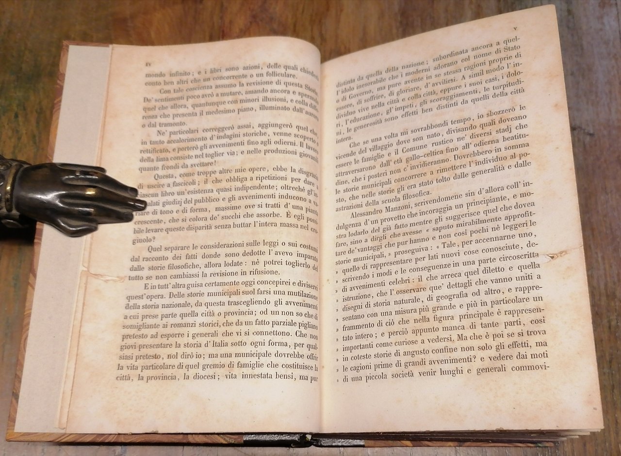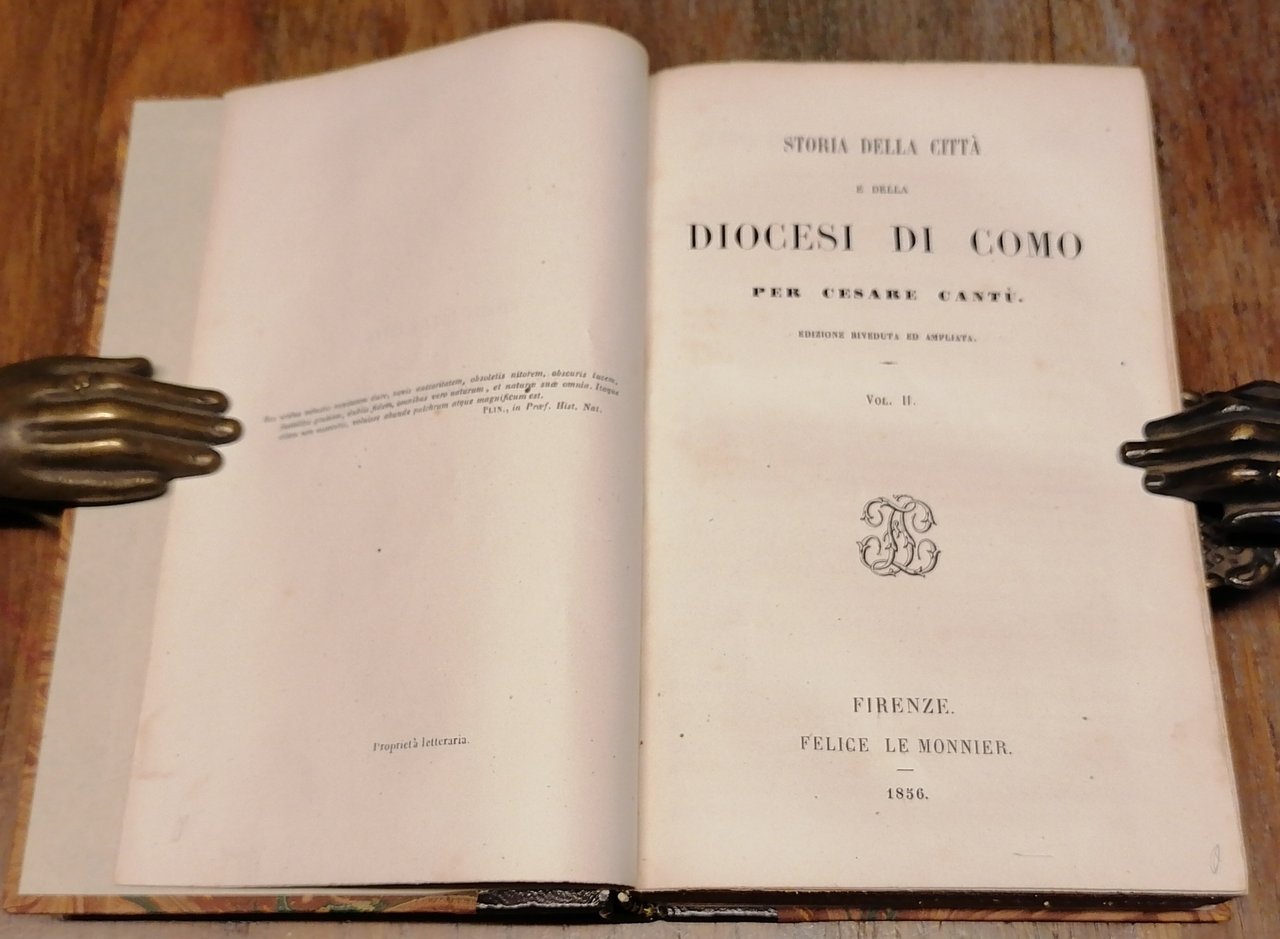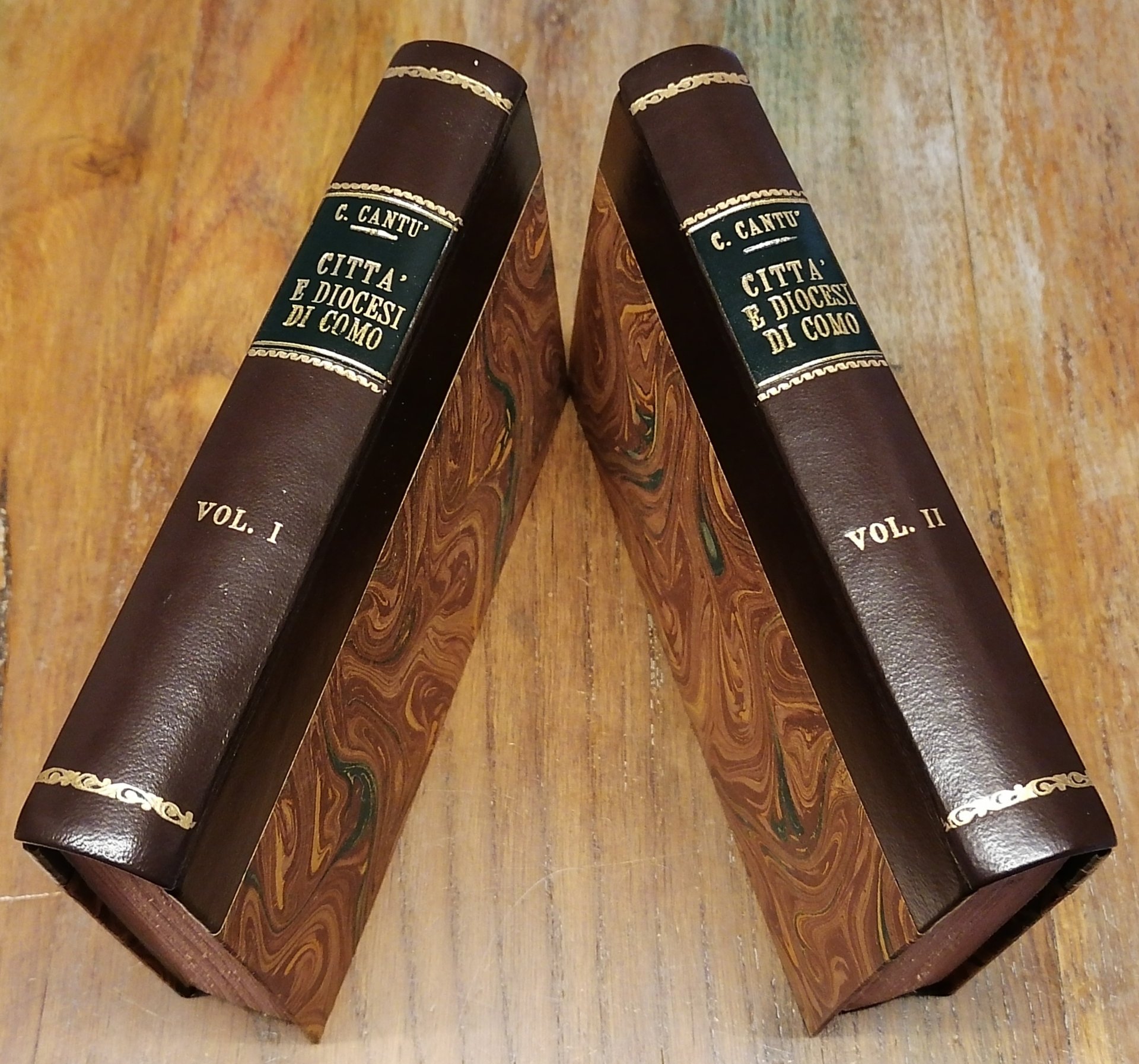 Due volumi in 16° (cm 17 x 11,5), legatura posteriore in mezza pelle, al dorso filetti dorati e tassello con titoli in oro, carta marmorizzata ai piatti, pp. (4),VIII,461,(1) ; (4),447,(1). Timbro di circolo privato al frontespizio del volume primo. Un piccolo foro al margine del taglio davanti interessa le prime 10 pagine del primo volume, nel volume secondo un restauro a pagina 447 (carta con indice ed errata), peraltro volumi solidi e ben conservati.