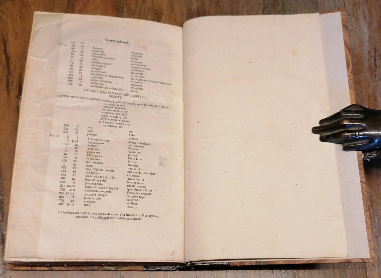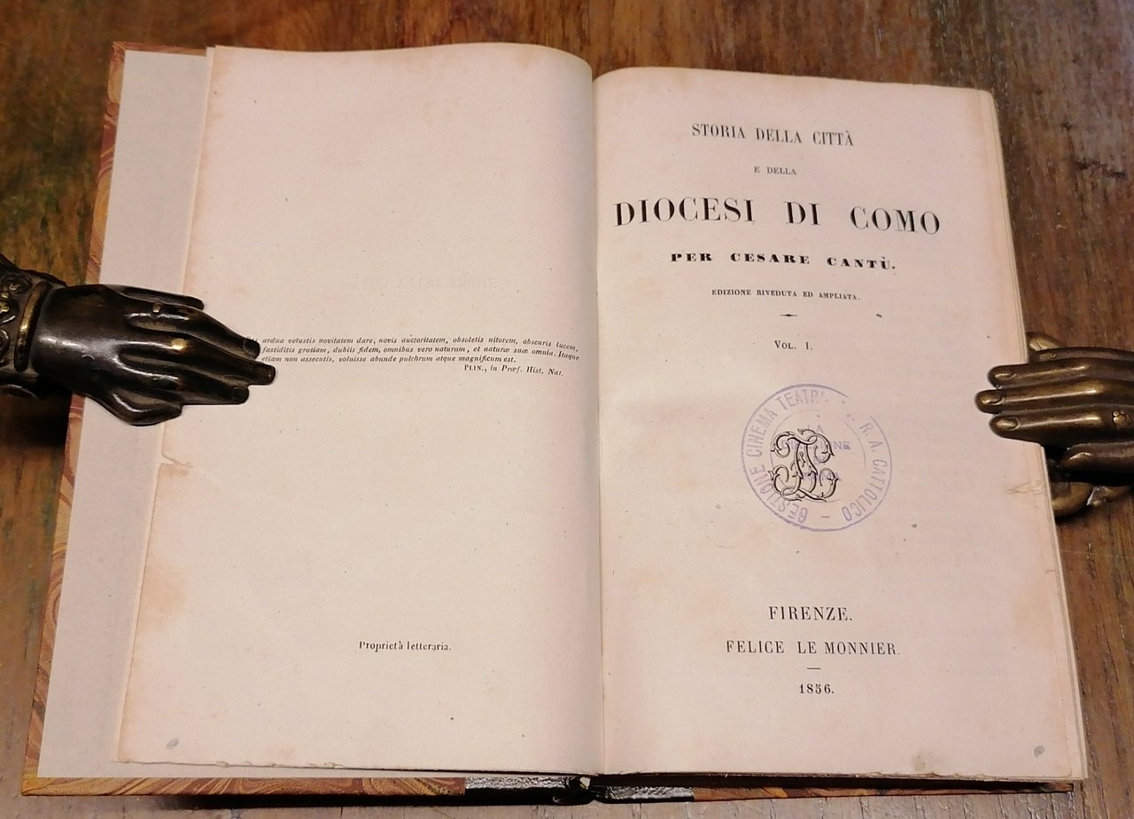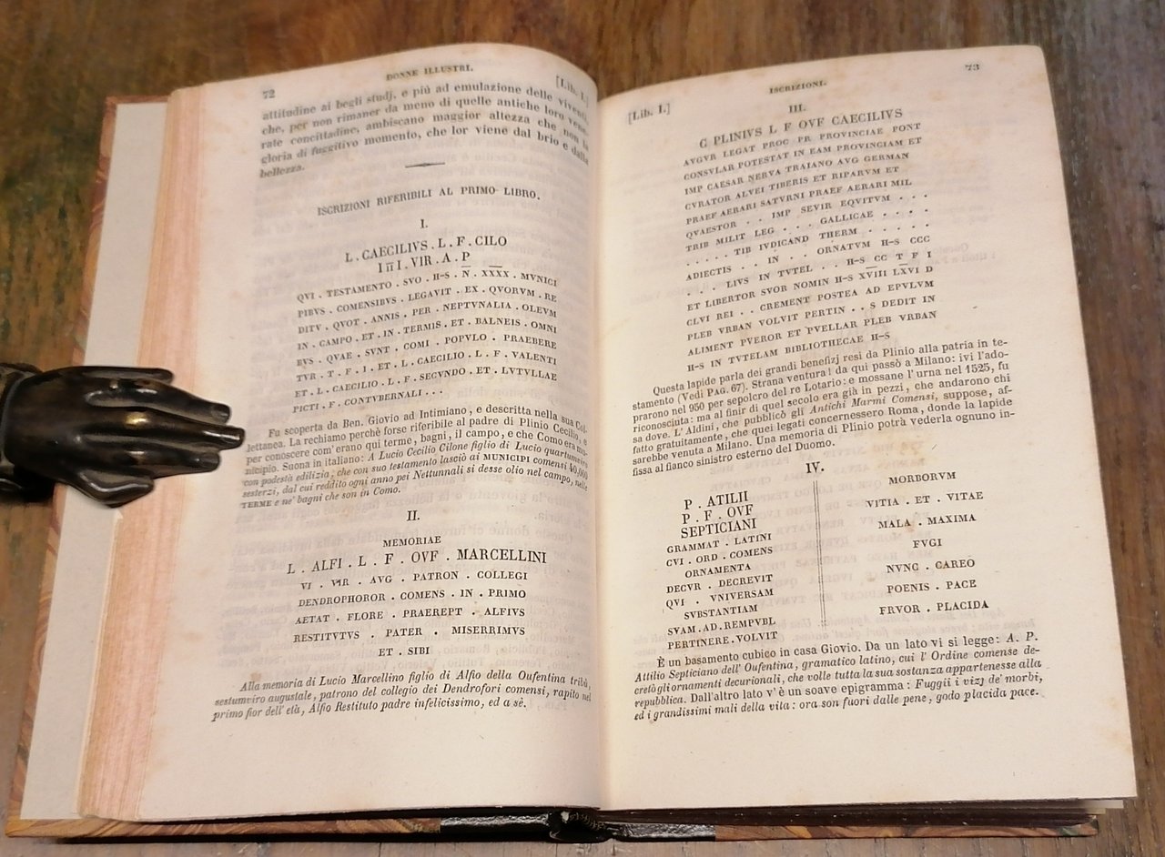Due volumi in 16° (cm 17 x 11,5), legatura posteriore in mezza pelle, al dorso filetti dorati e tassello con titoli in oro, carta marmorizzata ai piatti, pp. (4),VIII,461,(1) ; (4),447,(1). Timbro di circolo privato al frontespizio del volume primo. Un piccolo foro al margine del taglio davanti interessa le prime 10 pagine del primo volume, nel volume secondo un restauro a pagina 447 (carta con indice ed errata), peraltro volumi solidi e ben conservati.