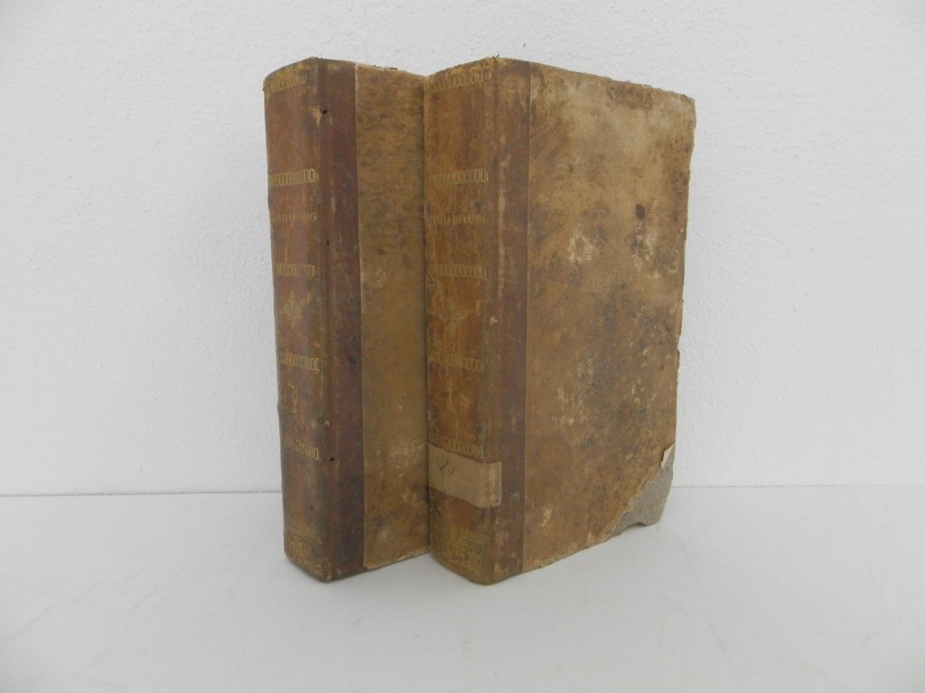 16^, 2 volumi, pp. pp. 555 [23], 571 [11]; legatura in mezza pelle coeva, generali segni d'usura ai piatti e agli angoli delle legature, una piccola mancanza all'angolo bianco di alcune pagine del volume primo, uniformemente brunito l'interno. Nel complesso un discreto esemplare, completo dell'acquatinta raffigurante il duomo e posta all'antiporta. Edizione originale di questa classica storia di Como e dintorni, pubblicata a dispense fra il 7 agosto 1829 e il 20 febbraio 1832 e spesso priva della tavola che si forniva gratuitamente solo ai sottoscrittori. . *** TUTTI I NOSTRI LIBRI SONO VISIBILI PREVIO CONTATTO MAIL O TELEFONO NELLA NUOVA SEDE DI MILANO: LIBRERIA COSMOPOLIS, VIA JOMMELLI, 22. ***