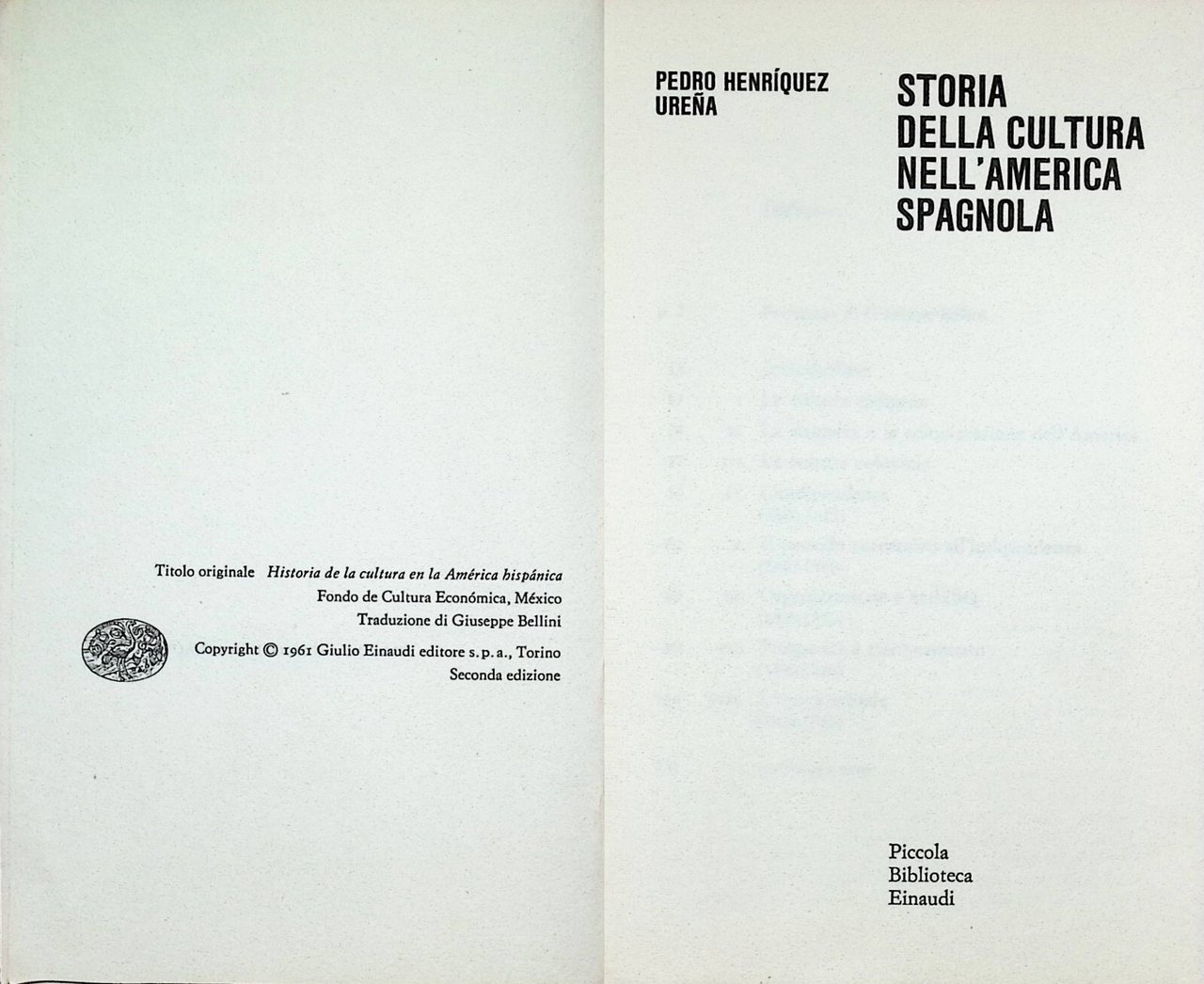 Storia della Cultura nell'America Spagnola Libro Henriquez Urena Einaudi 2^ ED