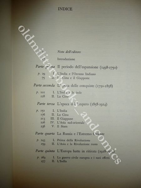 STORIA DELLA DOMINAZIONE EUROPEA IN ASIA KALAVAM M. PANIKKAR 1958 I^ Ed.