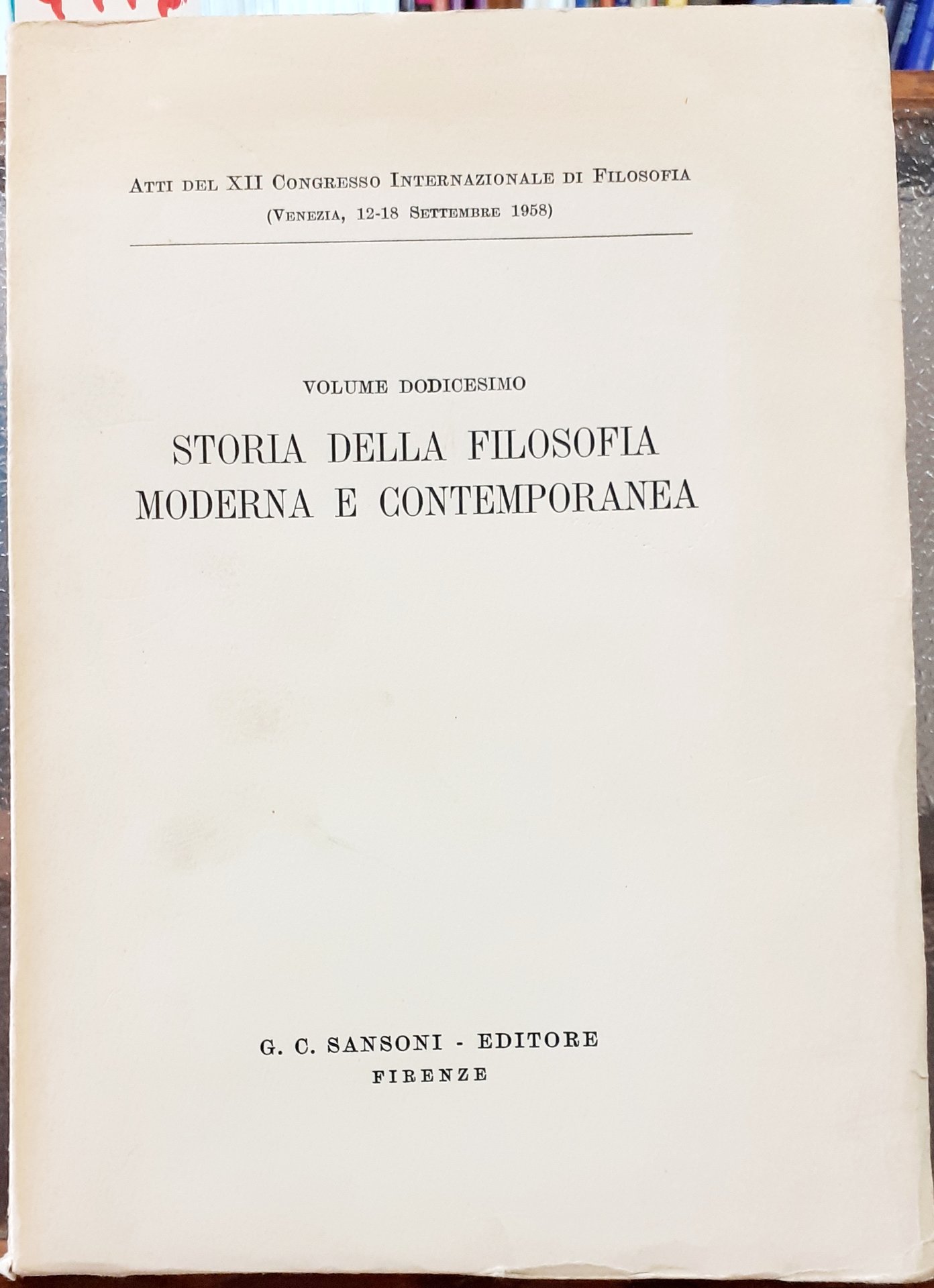STORIA DELLA FILOSOFIA MODERNA E CONTEMPORANEA. ATTI DEL XII CONGRESSO INTERNAZIONALE DI FILOSOFIA. (Venezia, 12-18 Settembre 1958)., Volume Dodicesimo.,