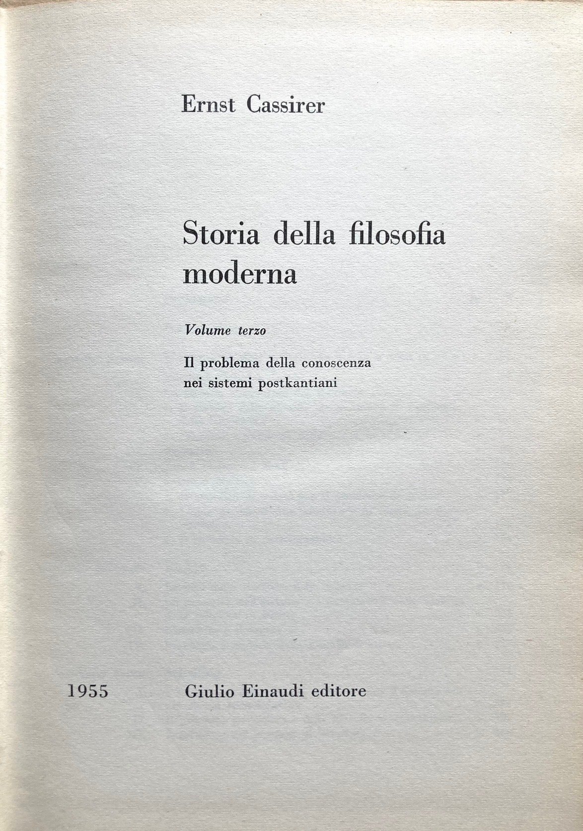 Storia della filosofia moderna. Volume terzo. Il problema della conoscenza nei sistemi postkantiani.