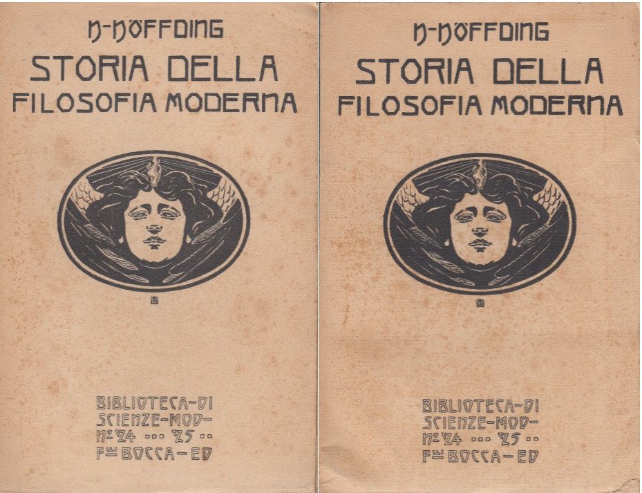 2 Voll. In-8 (Cm 24,5 x 15,7), pp. XV-505 - 585, brossura editoriale illustrata. Traduzione dal tedesco del prof. P. Martinetti. Esposizione della storia della Filosofia dalla fine del Rinascimento fino ai giorni nostri. Seconda edizione. Qualche piccola fioritura alla brossura, una piccola mancanza al dorso del secondo volume. Normali segni del tempo. OTTIMO
