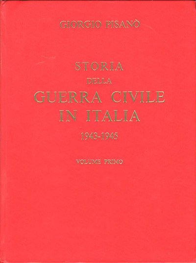 3 v. (1860 p.) : ill. ; 32 x 24 cm. Giorgio Pisanò ha rappresentato nella seconda metà del Novecento l'espressione più completa della tesi di destra sulla guerra civile in Italia durante la Seconda guerra mondiale. Giornalista e saggista, già ufficiale della Xª Flottiglia MAS nella RSI e per molti anni esponente del MSI, Pisanò ha dedicato vari volumi alla storia dell'Italia nel Secondo conflitto mondiale tra i quali si ricordano: «Il vero volto della guerra civile» (1961), «Sangue chiama sangue» (1964) e soprattutto la monumentale «Storia della guerra civile in Italia (1943-1945)», iniziata nel 1965 e terminata due anni dopo. Gli scritti di Pisanò intendevano dar voce ai fascisti sconfitti e legittimare anche le loro ragioni, respingendo la visione che voleva la RSI un mero strumento dei tedeschi, ed al contrario attribuendole il merito di aver protetto il Paese dal piano nazista di farne una semplice zona di occupazione militare. Secondo Massimo Luigi Salvadori, il concetto di guerra civile serviva quindi a Pisanò per «negare alla radice che da un lato vi fosse stata una creatura morta, la Repubblica dei traditori e dei servi dei nazisti, e dall'altra una creatura viva, la Resistenza, che aveva lottato per la liberazione nazionale dal nemico tedesco» Inoltre Pisanò, rovesciando l'interpretazione antifascista – secondo cui la guerra civile fu una conseguenza della nascita della RSI – utilizzava il termine soprattutto in chiave anticomunista, additando il PCI come il principale fomentatore dello scontro fratricida tra italiani, in cui avrebbe coinvolto tutte le altre forze antifasciste con la rottura dell'attesismo. . Legatura editoriale, coperta in cartone rigido in similpelle di colore rosso, titoli impressi in oro al piatto e al dorso. All'interno pagine in carta patinata opaca con numerosissime fotografie in b/n. Volumi in ottime condizioni. Codice libreria 4332.