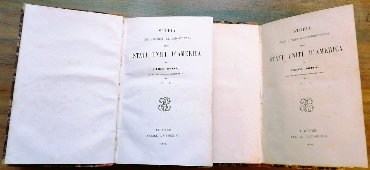 (Rivoluzione americana; Nord America) Due volumi in 16° grande (cm 18 x 12), legatura coeva in mezza pelle, al dorso titoli ed impressioni in oro, pp. (4),LXII,(2),556 ; (4),634,(2). Volumi solidi, carta bianca, alcuni irrilevanti puntini di ossidazione lungo i tagli ma ottimo stato di conservazione.