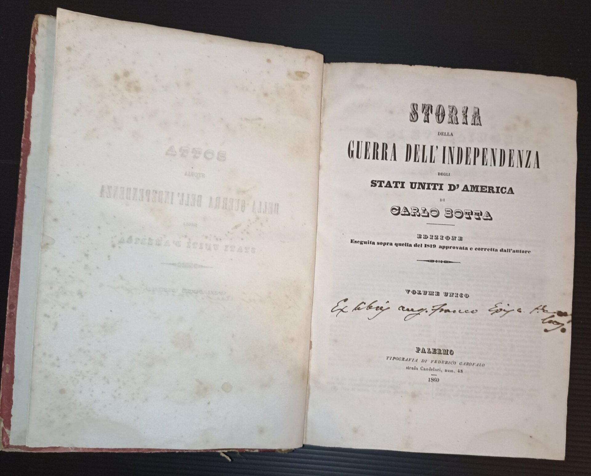 In 8', mz. pelle, oro al dorso, pp. XXII+588, mancanza alla base del dorso usurato dal tempo, angoli e margini dei piatti consumati, scritta al frontespizio, fior. ai tagli e sparse, nell'insieme buone condizioni. Edizione eseguita sopra quella del 1849 approvata e corretta dall'Autore. ***Due to bureaucratic reasons, books dated over 70 years old cannot be immediately exported, please contact us before placing the order.***