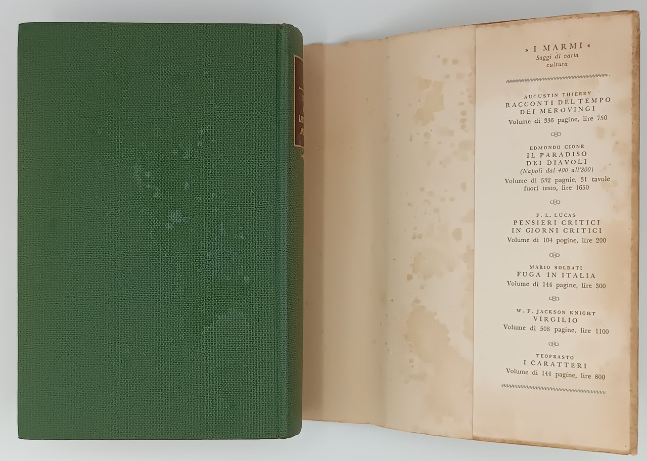 Nuova edizione riveduta e corretta. Segni di brunitura generale data dal fattore tempo. Qualche macchiolina sovracopertina. Interno in condizioni ottime.