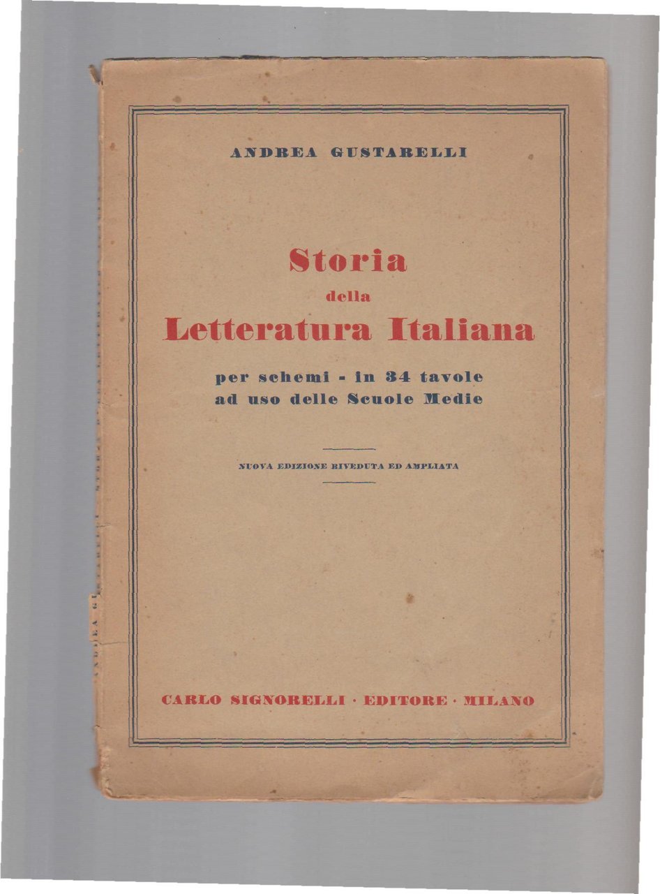 Storia della Letteratura Italiana per schemi, in 34 tavole ad uso delle scuole.