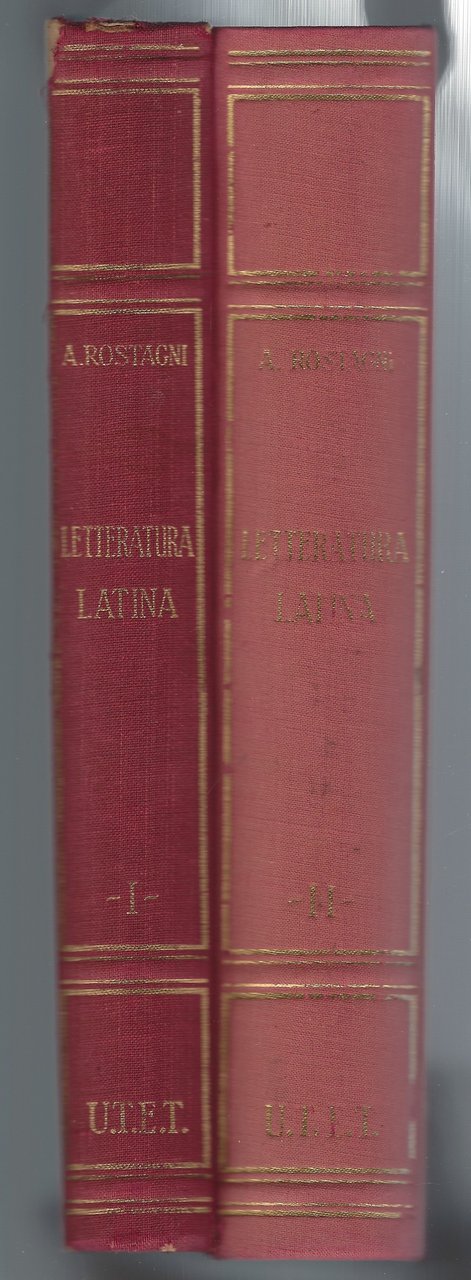 Legature editoriali in tutta tela rossa con titoli in oro ai piatti anteriori e ai dorsi.