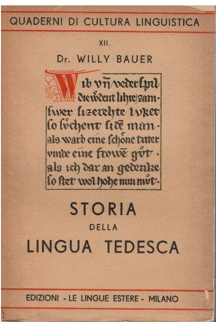 Libro sulla storia della lingua tedesca stampato in pieno ventennio. Opera ben conservata legatura solida, sovra copertina con strappetti.