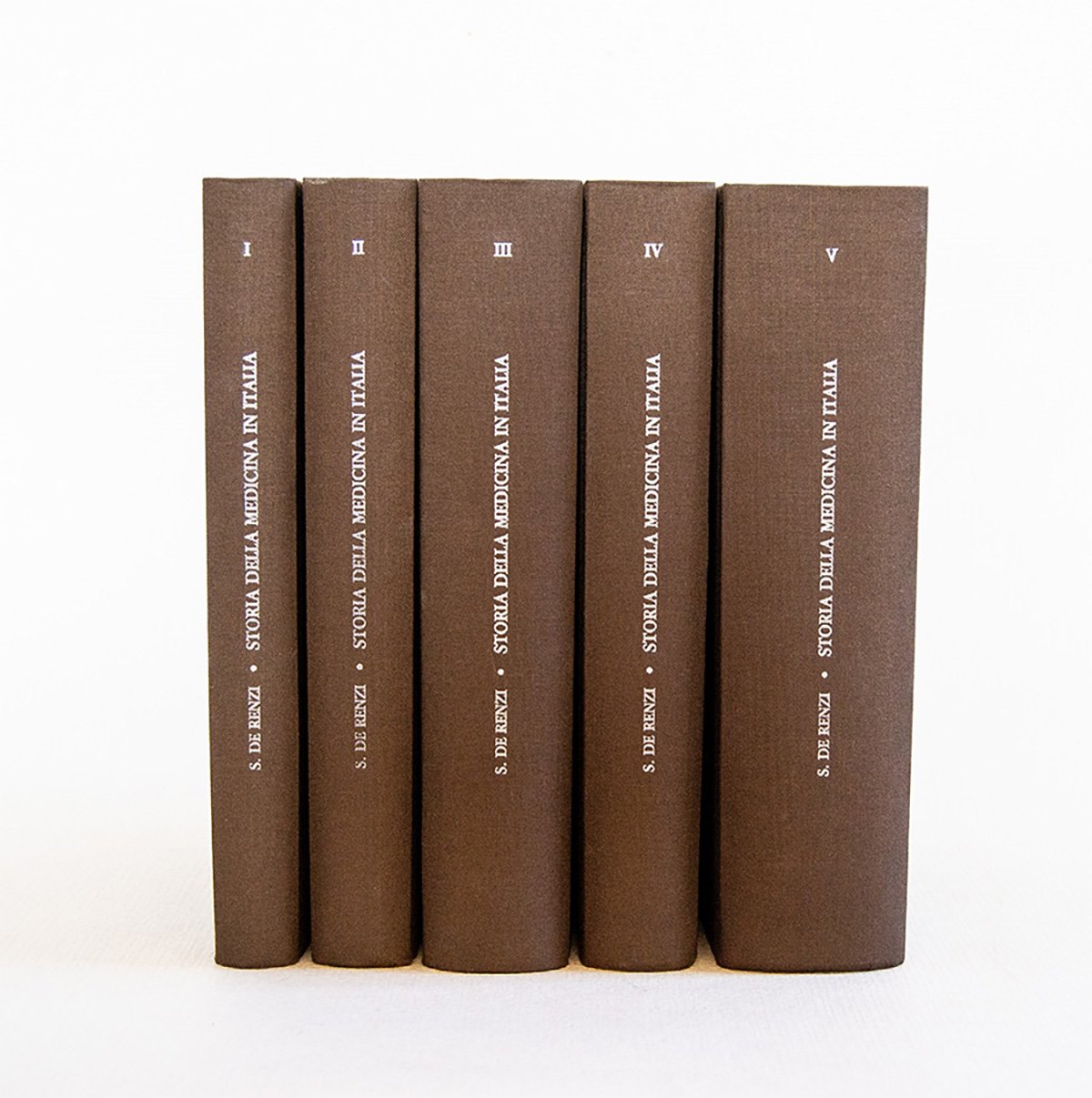 Tela ed. con titolo ai dorsi. Eccellente. 5 voll. XIV, (4) con ritratto in ant. 370, (2) pp. con indice; VIII, 474, 20 pp.; 752 pp.; VIII, 583 pp.; VIII, 1016 pp. "Esemplare per l'esattezza e profondità delle ricerche, per la chiarezza con la quale sono tracciati i limiti dei periodi storici, per le notizie copiosissime raccolte e lucidamente esposte". (D.B.I.)