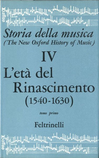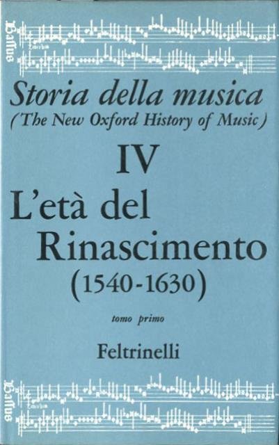 2 v. (XII, 1055 p. compless.) : ill., tav. ; 24 x 15 cm. Questo quarto e doppio volume della oxfordiana "Storia della musica" descrive le vicende della completa penetrazione della cultura musicale umanista nel pensiero e nella sensibilità europei attraverso un lungo e lento processo che portarono a completa maturazione questa "ars nova". Titolo originale dell'opera: The Age of Humanism (1540-11630). Traduzione di Francesco Bussi. . Legatura editoriale, coperta rigida in tela di colore rosso scuro, con titolo in oro al dorso, sovraccoperta illustrata. Il primo tomo è prima edizione (1969) mentre il secondo è seconda edizione (1975). Codice libreria 1022.