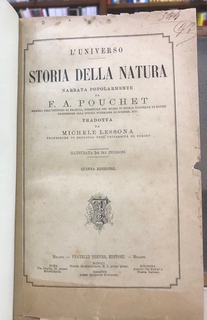 STORIA DELLA NATURA: NARRATA POPOLARMENTE DA F.A. POUCHET membro dell' Istituto di Francia, direttore del museo di storia naturale di Rouen professore alla scuola superiore di scienze, ecc. TRADOTTA DA MICHELE LESSONA professore di zoologia nell' Università di Torino.