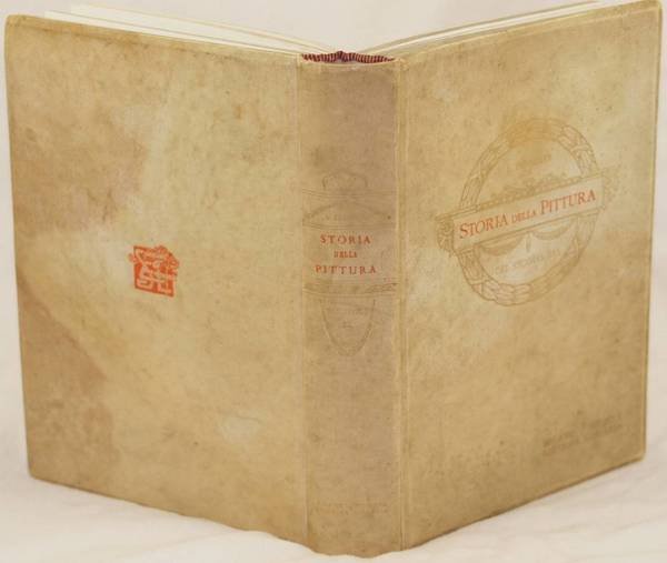In 4. Dim. 29,5x21 cm. Pp. IX+623. Edizione del 1915 di questa opera sulla storia della pittura del XIX secolo di Leonce Benedite direttore del Museo Nazionale del Luxembourg Traduzione e note a cura del famoso critico d'arte Gino Fogolari Direttore del museo nazionale del Luxembourg. Opera composta da due volumi, siamo in possesso solo del secondo tomo in sè completo. All'interno: Scuola francese, inglese, americana, olandese, belga, svizzera, tedesca, Austria e Ungheria, Scuole Scandinave, russa, spagnola, italiana. Il testo è impreziosito da 508 illustrazioni e 16 planches colorate fuori testo coperte da velina. In buone condizioni Copertina in piena pergamena con titolo e decorazioni al dorso e piatti in ottime condizioni generali con lievi usure ai margini e dorso. Legatura in buone condizioni. All'interno le pagine si presentano in buone condizioni con fioriture e lievi gore d'umidità al margine superiore.Edition of 1915 of this work about the history of painting of XIX century by Leonce Benedite director of national museum of Luxembourg. Translation and notes by the famous art critic Gino Fogolari Manager of national museum of Luxembourg. The workw as made up of two volumes, unfortunately we only have the second tome complete in itself. Inside: Frech, english, american, dutch, belgian, switzerland, german, austrian and hungarian, Scandinavian, russian, spanish italian schools. The text is enriched by 508 illustrations and 16 coloured planches covered by tissue paper. In good conditions. Full parchment cover with golden title and decorations in the spine and plates in very good general conditions slightly worn in the edges and spine. Binding in good conditions. Inside pages are in good conditions with foxings and slight humidity signs in the edges.