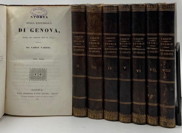 STORIA DELLA REPUBBLICA DI GENOVA, DALLA SUA ORIGINE SINO AL 1814; SCRITTA DA CARLO VARESE. TOMO PRIMO (-OTTAVO).