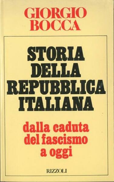 259 p. ; 22 x 14 cm. Trentasei anni di avvenimenti politici e sociali italiani, dalla ricostruzione post-bellica (con il riproporsi del problema dello sviluppo del mezzogiorno) al periodo dell'unità nazionale attraverso le tappe fondamentali del centro-sinistra, dell'autunno caldo, del compromesso storico, del terrorismo. Un racconto storico fatto di grandi illusioni, grande speranze ma anche di grandi delusioni, che fa dire a Bocca "la prima repubblica è davvero morta. adesso si può scrivere la storia". Brossura editoriale, coperta in cartoncino flessibile plastificato lucido, titolo impresso al piatto e al dorso. Codice libreria 7767.