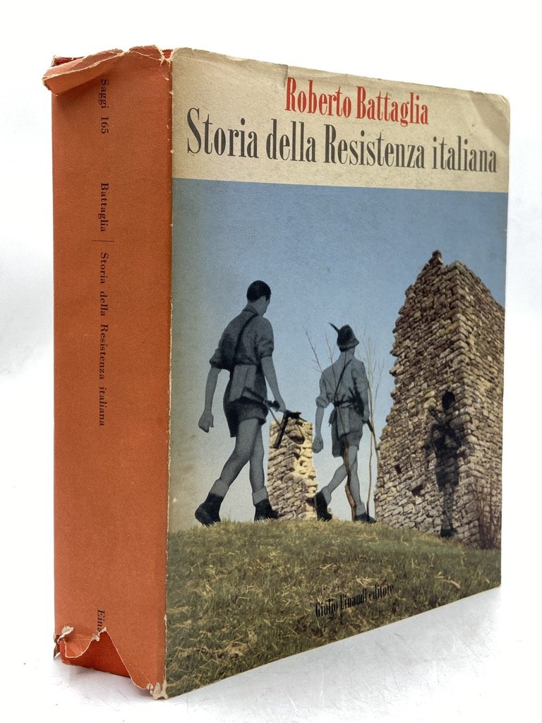 Brossura editoriale con sovraccoperta, cm 21.5 x 16, pp 621 (11); alcune tavole e cartine in nero fuori testo. Collana Saggi, numero 165. Discreto esemplare, con difetti e mancanze sulla sovraccoperta, colpetti e conseguenti lievi sgualciture delle pagine sugli angoli. Edizione originale di questo studio che Battaglia, partigiano di G.L., ultimò tra il 1950 e il 1952. L’opera «metteva per la prima volta a fuoco i problemi del formarsi dell'esercito partigiano», lo sviluppo innanzitutto politico della Resistenza e dell’antifascismo, i diversi aspetti della lotta nelle città e nelle campagne, a Nord e a Sud della Linea Gotica, i rapporti coi partiti, con gli alleati e con i tedeschi (v. Nitti, DBI).