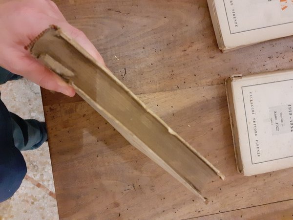 Costa della copertina rotta in parte (vedi foto) ma la rilegatura è robusta.