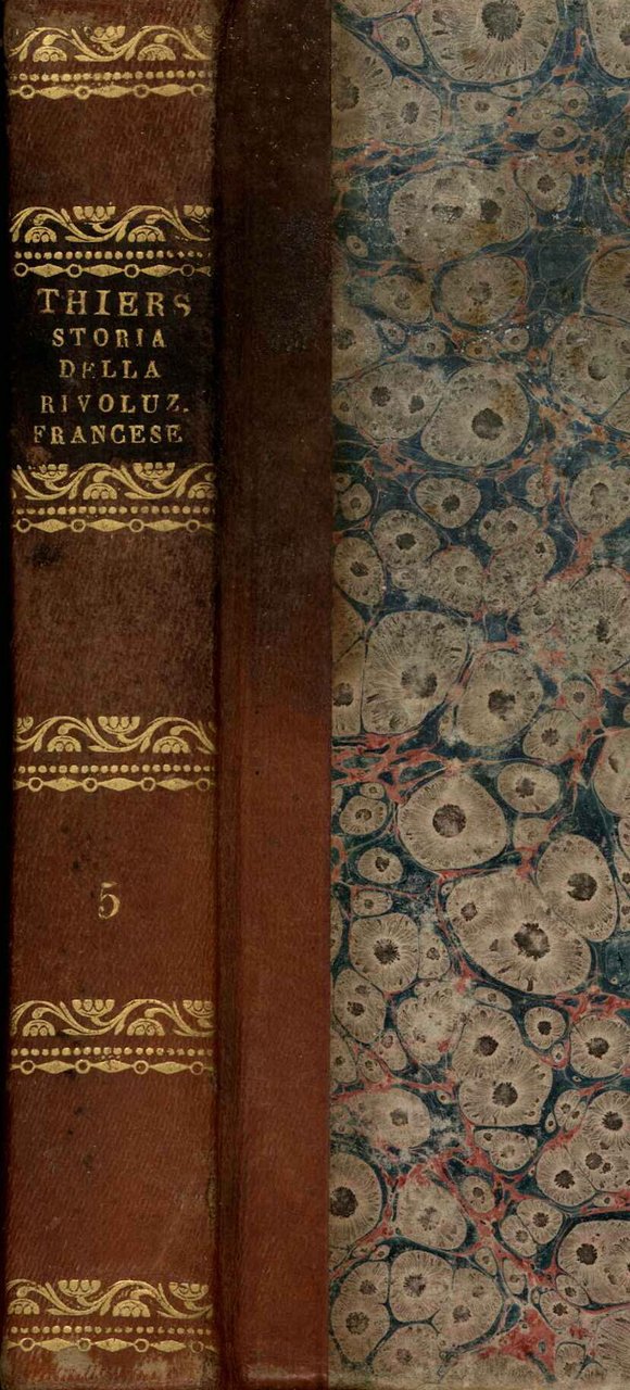Luigi Adolfo Thiers STORIA DELLA RIVOLUZIONE FRANCESE VOLUME QuintoTraduzione con note ed illustrazioni storiche di G. Barbieri. In 8vo cart. con dorso in tela. Qulache fioritur MA MOLTO BUONO