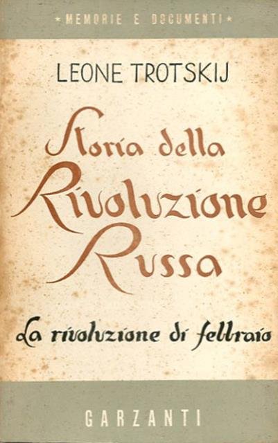 2. ed. 3 v. (XII, 542; XV, 397; 393 p.) ; 21 x 13 cm. Memorie e documenti. «Storia della Rivoluzione russa» è un'opera storica di Lev Trockij, redatta mentre si trovava in esilio in Turchia, sull'isola di Prinkipo. Commissionatagli da un editore americano, venne scritta tra la fine del 1929 e la prima metà del 1932, è considerata un classico della storiografia marxista, scritto da un protagonista degli eventi narrati. La prima edizione italiana è del 1939. Questa seconda edizione è la prima ad essere pubblicata dopo la caduta del fascismo. Contiene: Vol. 1. La rivoluzione di febbraio; Vol. 2. La rivoluzione di ottobre : parte prima; Vol. 3. La rivoluzione d'ottobre : parte seconda. Brossura editoriale, coperta in cartoncino flessibile con impresso il titolo al piatto e al dorso. Manca la sovraccoperta originale, segni del tempo alla coperta, al dorso, al taglio e alle pagine interne (fioriture e ingiallimento della carta), per il resto libri accettabili. Codice libreria 4891.