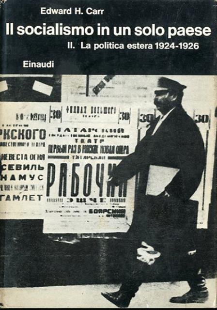 XXI, 978 p. ; 22 x 15 cm. Biblioteca di cultura storica, 78/III**. Pietra miliare della storiografia contemporanea, l'immensa ricerca di Carr dedicata all'Unione sovietica si concentra in questo volume su quegli anni di interregno immediatamente successivi alla morte di Lenin. Anni in cui Zinov'ev, Kàmenev, Bucharin, Trockij e Stalin si contendono la guida del paese. Oltre ai vividi ritratti dei protagonisti, Carr ci offre un resoconto dettagliatissimo sulla vita politica ed economica dell'URSS di quegli anni: dall'agricoltura all'industria, dalla trasformazione della classe operaia ai rapporti con la Terza Internazionale e gli altri partiti comunisti europei ed extraeuropei. L'affresco che ne esce è una sintesi senza pari di anni decisivi, destinati a imprimere alla storia dell'URSS una cruciale svolta piena di contraddizioni e sofferenze per l'intero popolo russo. Sulla base di un vastissimo materiale documentario, in parte inedito, sono messi in luce i problemi di politica estera del nuovo Stato sovietico, caratterizzato negli anni della NEP e in quelli seguenti dall'antagonismo col mondo capitalistico. Titolo originale dell'opera: «A History of Soviet Russia. Socialism in One Country 1924-1926. Vol. 3». Traduzioni di Carlo Ginzburg e Massimo Salvadori. Legatura editoriale, coperta in cartone rigido in tela verde, titolo impresso in bianco al dorso, muto il piatto. Sovraccoperta editoriale illustrata in b/n in carta patinata lucida. Leggero segno del tempo ai risvolti della coperta e al taglio (ingiallimento delle carta e fioriture), per il resto esemplare integro. Codice libreria 6579.