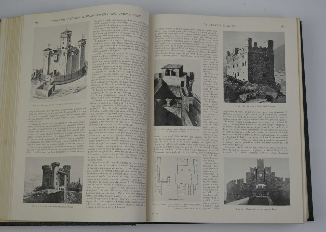 Cm. 31, pp. x (2) 933. Con 2717 illustrazioni ed una tavola f.t. Solida legatura editoriale in piena pelle con titoli in oro. Ottimo stato di conservazione. Dall'indice: Le costruzioni meccaniche - La metallurgia nel Medio Evo e sino a tutto il secolo XVIII - L'arte Tessile - La Tecnica Militare - Le Costruzioni Navali - Le Strade ed I Ponti - La Tecnica delle Costruzioni - Le Costruzioni Idrauliche - I Tempi Moderni - Le Costruzioni Meccaniche - La Metallurgia nell'epoca Moderna e Contemporanea - La tecnica Militare - Le Costruzioni Navali - Le Costruzioni Ferroviarie. La Carrozza, Il Ciclo e L'automobile - Le Strade ed i Ponti - La Tecnica della Costruzioni - L'arte Tessile - L'arte della Stampa - Le Costruzioni Aeronautiche.
