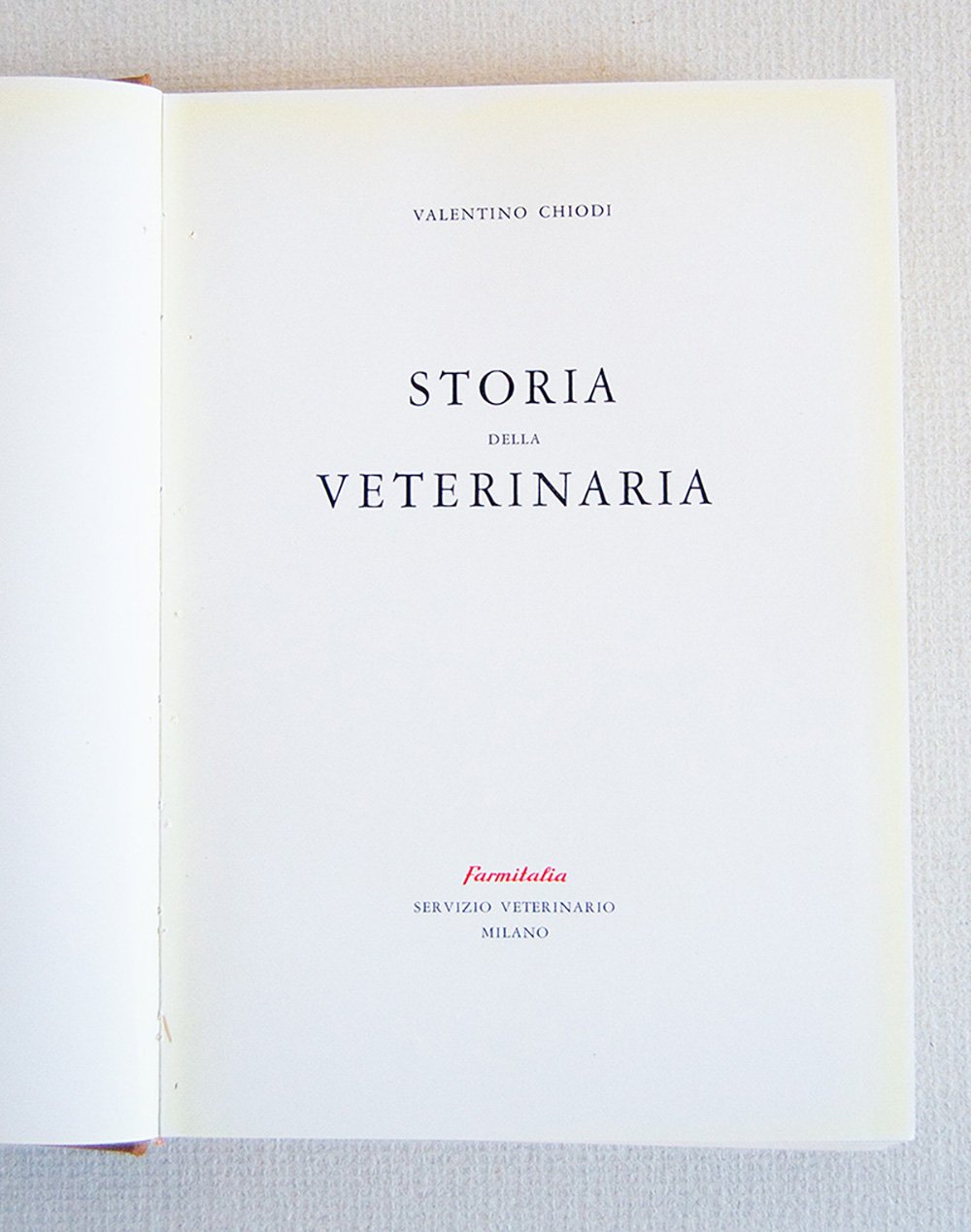 XIV, (1) con indice, 535 pp. con decine di ill. a colori e in b/n n.t. Pregevole opera sulla storia della medicina veterinaria, sovente citata.