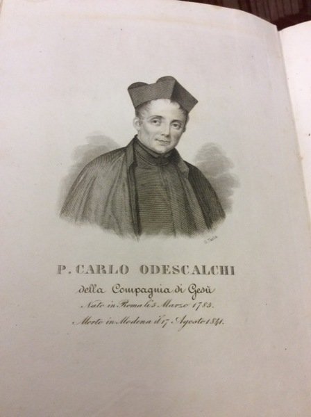 In-8 gr., mz. pelle coeva, fregi e titolo oro al dorso, pp. 336, con 1 ritratto del Padre Odescalchi inc. in rame, fuori testo In buono stato (good copy).