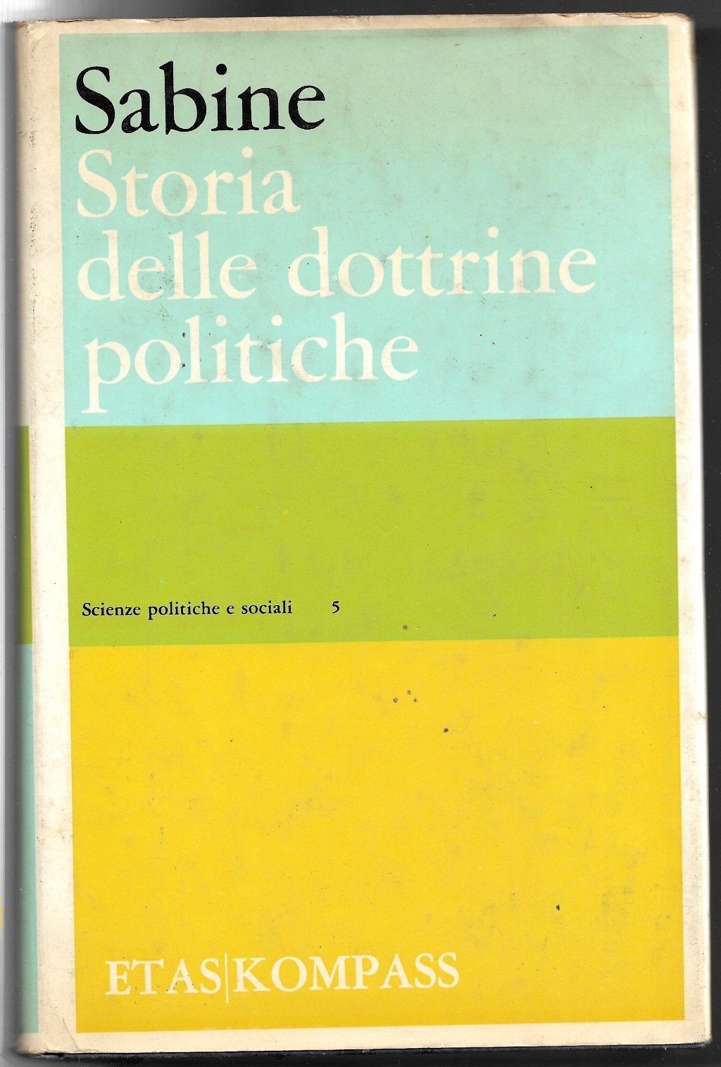 Libro vintage. Argomento: Saggio. Autore: Sabine George H. Editore: Etas Kompass. Luogo: Milano. Anno: 1967. Formato: in-8°. Pagg: 755. Legatura: Cartonata. Collana: Scienze politiche e sociali 5. Conservazione: Buona. Prefazione dell'autore, traduzione di Luisa De Col e di Umberto Campagnolo, quinta edizione. Leggero foxing al taglio anteriore, angolo de prezzo tagliato.