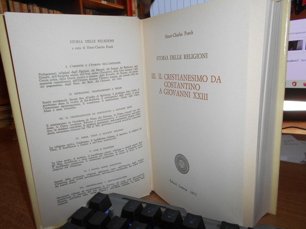 Storia delle Religioni. HENRI-CHARLES PUECH. Bari, Laterza, 1977. III. Il Cristianesimo da Costantino a Giovanni XXIII. In-8° piccolo, cartonato edit. con titolo al dorso e sovracopertina. 798, (1) pp. Ottimo esemplare. Uff. stanzetta