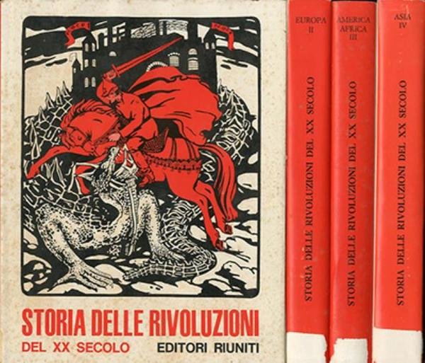 2. ed. 4. v. (XXVIII, 2259 p.) : ill. ; 31 x 23 cm. Vol. 1: G. Boffa, La rivoluzione russa. Vol. 2: E. Collotti, La Rivoluzione tedesca; E. Santarelli, la Rivoluzione ungherese; M. Pacor, la Rivoluzione jugoslava; M. Tuñion de Lara, la Guerra civile di Spagna. Vol. 3: S. De Santis, La Rivoluzione messicana; S. Tutino, la Rivoluzione cubana; R. Ledda, Le Rivoluzioni africane. Vol. 4: E. Collotti Pischel, La Rivoluzione cinese; G. Bourdarel e J. Chesneaux, la Rivoluzione vietnamita. Introduzione di Eric Hobsbawm. La traduzione dell'introduzione è di Luca Trevisani; la traduzione de "La guerra civile in Spagna" è di Anna Scriboni; la traduzione de "La rivoluzione vietnamita" è di Maria Bufalini. Legatura editoriale, coperta in cartone rigido in similpelle di colore rosso scuro con impresso il titolo in oro al piatto e al dorso. Sovraccoperta illustrata a colori in carta patinata opaca. Segni del tempo alla sovraccoperta, piccole lacerazioni al dorso, segni di nastro adesivo, fioriture e ingiallimento della carta. Fioriture e ingiallimento dei rivolti e del taglio per il resto libri integri, riccamente illustrati. Codice libreria 6048.