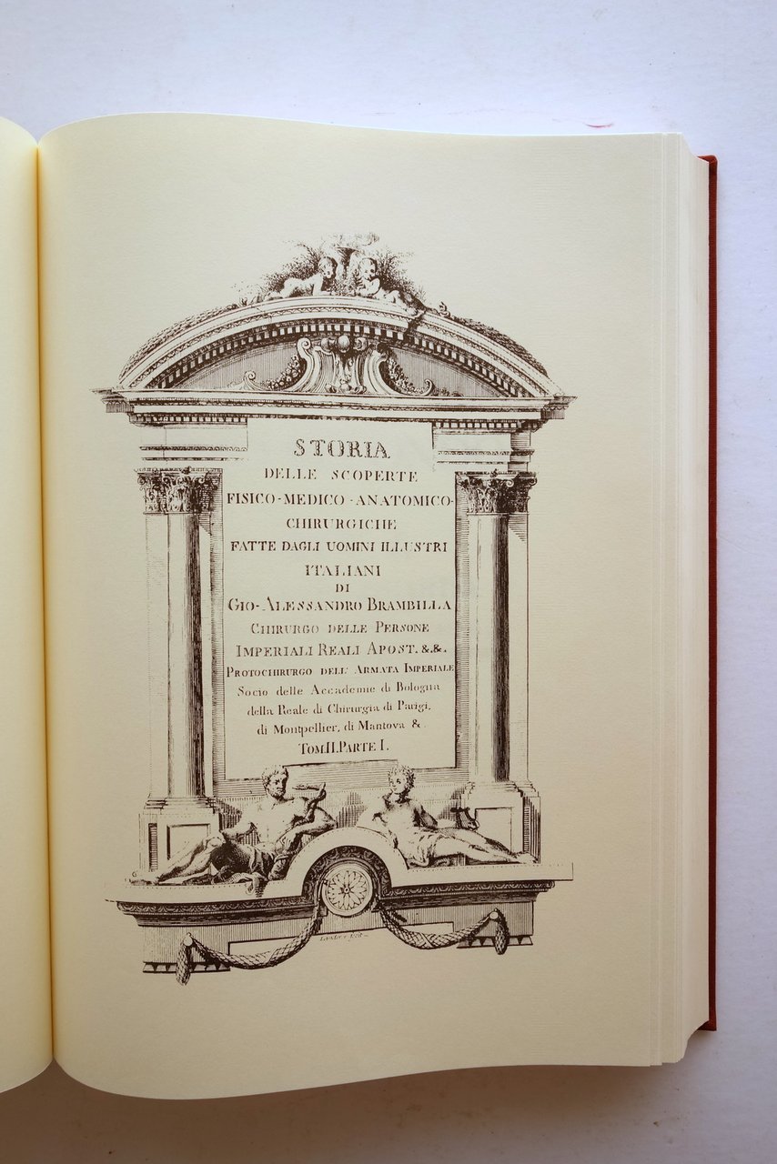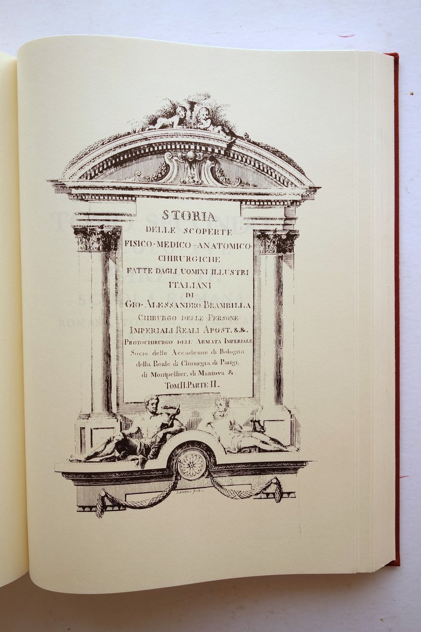 Giovanni Alessando Brambilla, † Storia delle scoperte Fisico - Medico - Anatomico - Chirurgiche fatte dagli uomini illustri italiani introduzione di Ugo Stefanutti Ristampa anastatica; Arnaldo Forni Editore, Bologna 1977; cm 31,5x21,5; pp. [16] (introduzione); pp. [18]-XLVIII-192 (tomo I); pp. XXII-276 (tomo II-parte I); pp. [XVIII]-211 (tomo II-parte II); pp. [3]; tutta tela ed. con titolo impresso in oro al dorso.† † Condizioni di conservazione Condizioni pi˘ che buone con leggere tracce d'uso; piatto ant. con una minuscola macchietta. Interni ottimi. † Pregevole ristampa anastatica (ed. Forni di Bologna) dell'edizione edita nell'Imperial Monisterio di S. Amborgio Maggiore", Milano, 1780-82. † SETT28.L23622 N "
