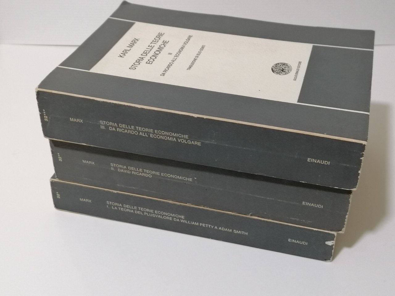 Editore: Einaudi Collana: Nuova Biblioteca Scientifica Einaudi Formato: in 8^, brossura Karl Marx. Storia delle teorie economiche. 3 Volumi - Einaudi Condizioni: molto buone compatibilmente con gli oltre cinquant'anni di età 2F-9-1/2/3