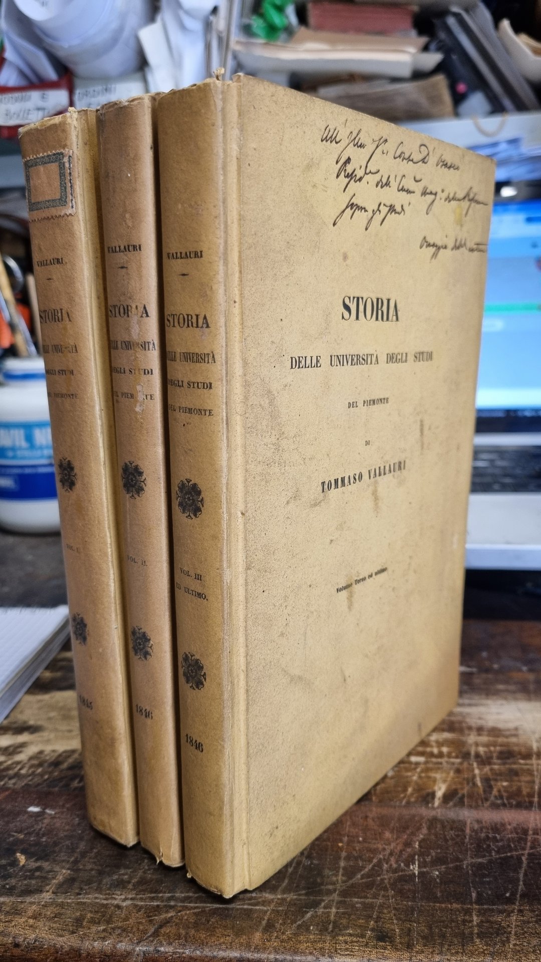Vol. tre in-8° di pp. XV-382-296-348, legatura in cartonato editoriale. Sulla copertina di due volumi c'è l'invio omaggio dell'autore. Ottima la conservazione.