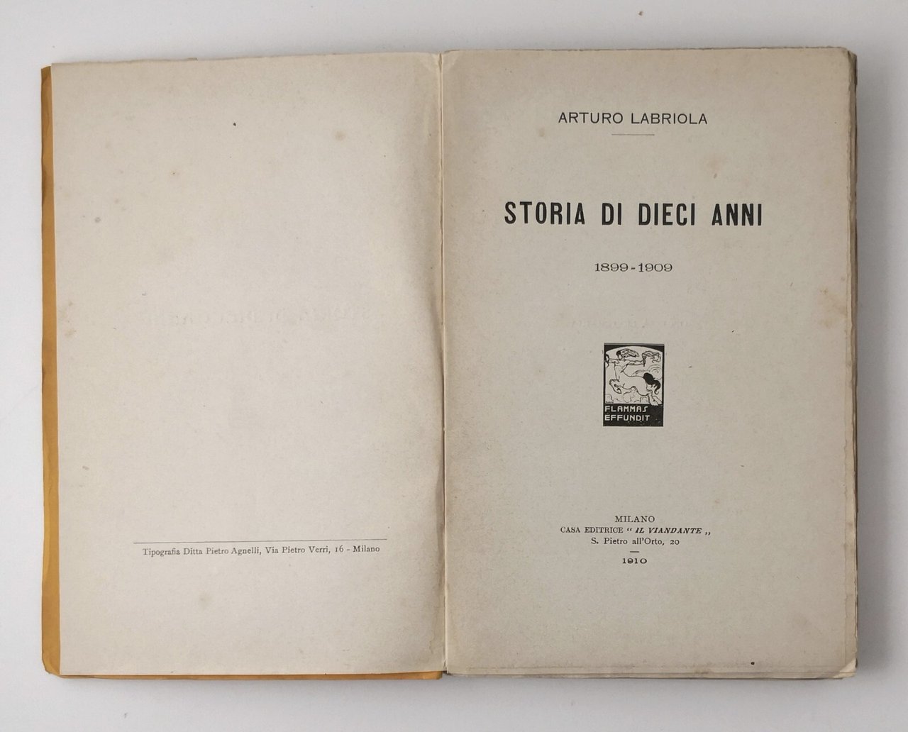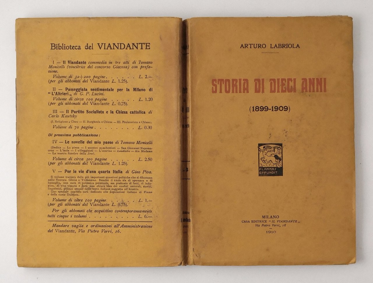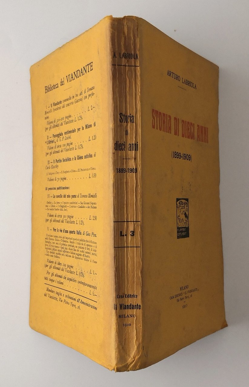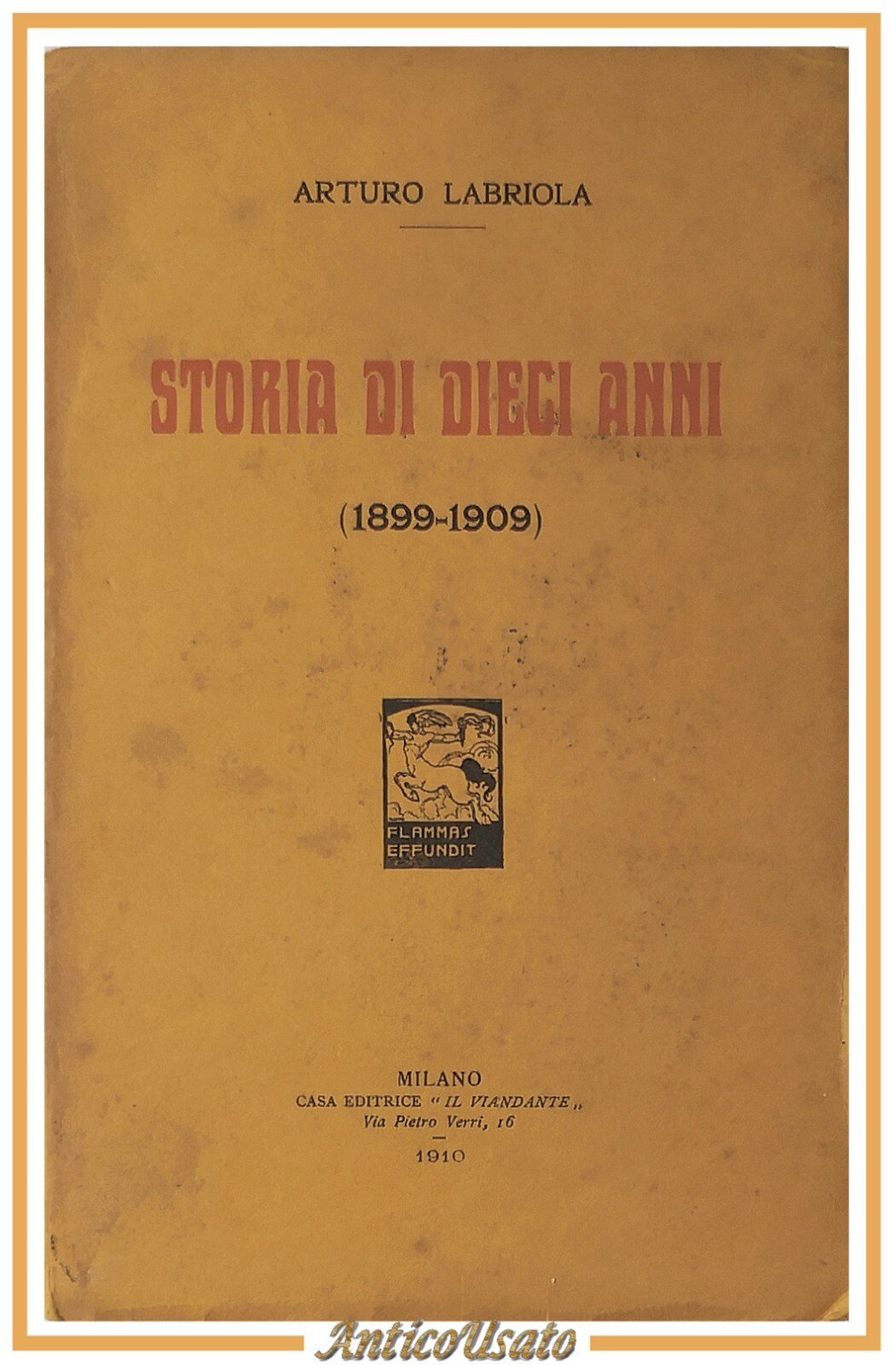 STORIA DI DIECI ANNI 1899 1909 di Arturo Labriola 1910 Il Viandante Libro usato