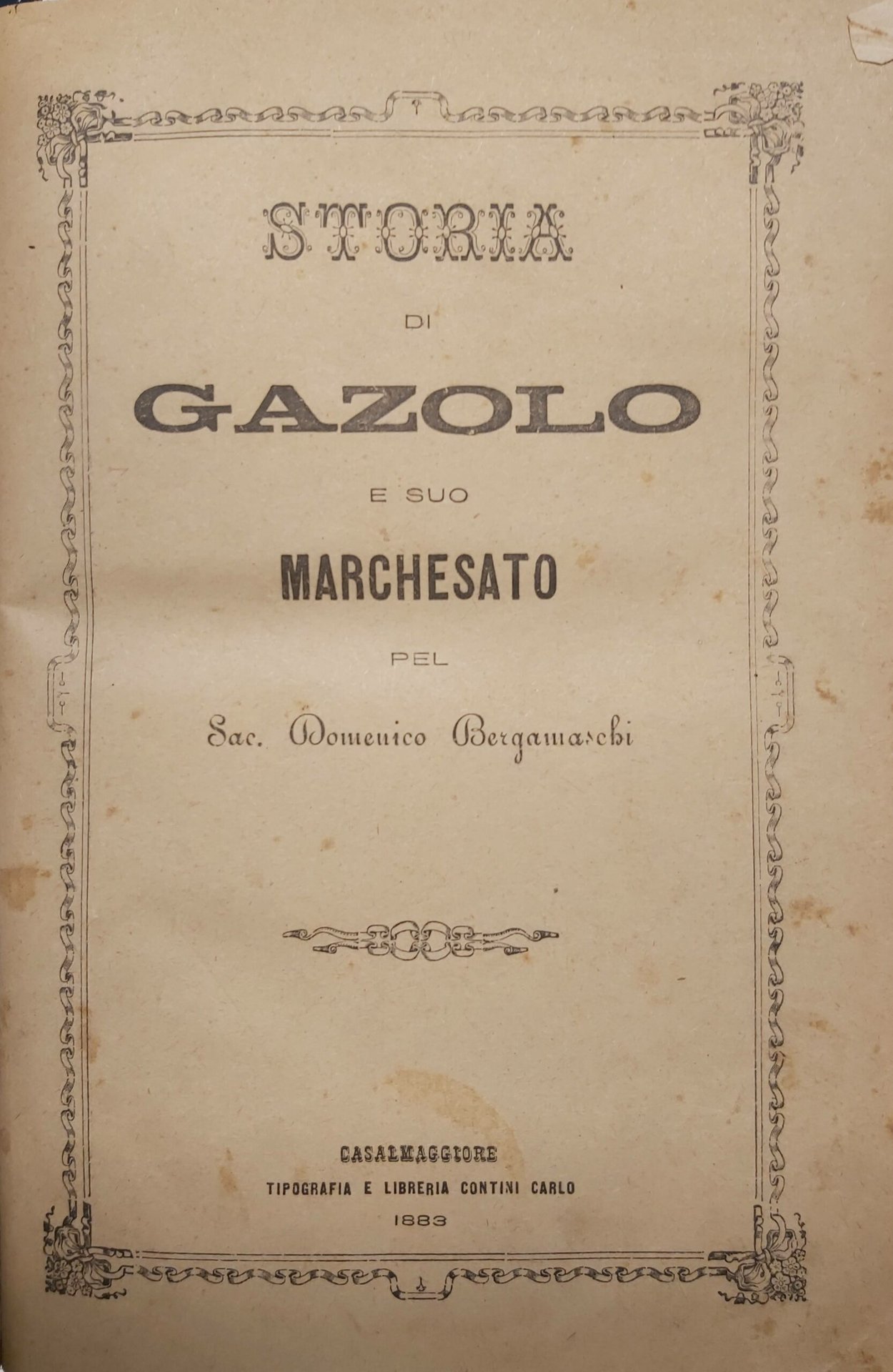 in-8, pp. 237, (2), rileg. mod. pelle muta con copertina ant. originale conservata all'interno. Fondamentale opera sul paese mantovano. Lozzi 2085. Non comune. Ottimo copia. [385]