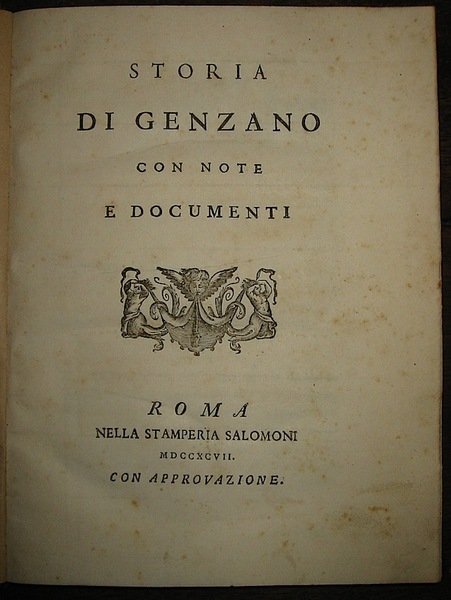 4to (cm, 23,8), 4 cc.nn., 174 pp., 1 c.nn. Legatura ‘800 in mz. tela con fili, fregi e titolo oro al ds. Ottimo esemplare. Edizione originale, molto rara. Il nome dell’Autore si ricava dalla Dedicatoria.