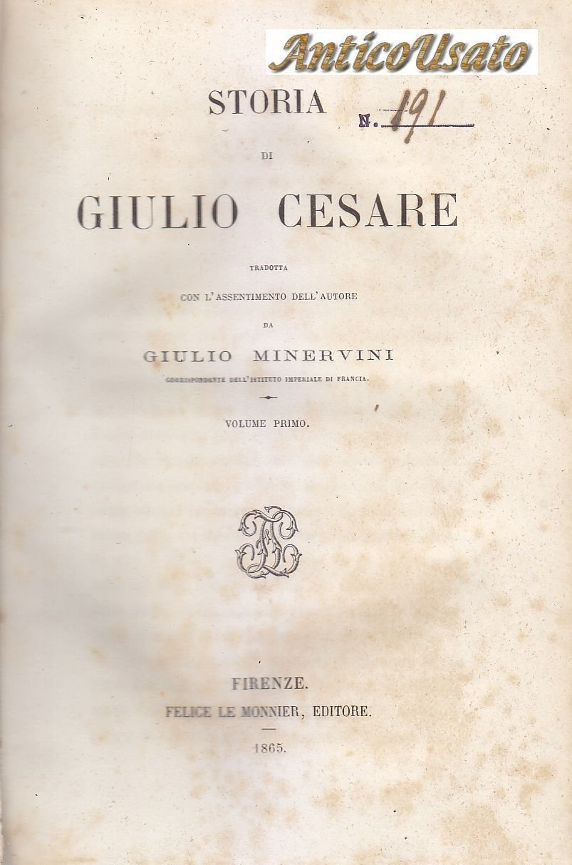 STORIA DI GIULIO CESARE 2 VOLUMI di Minervini 1865 67 Le Monnier libro antico