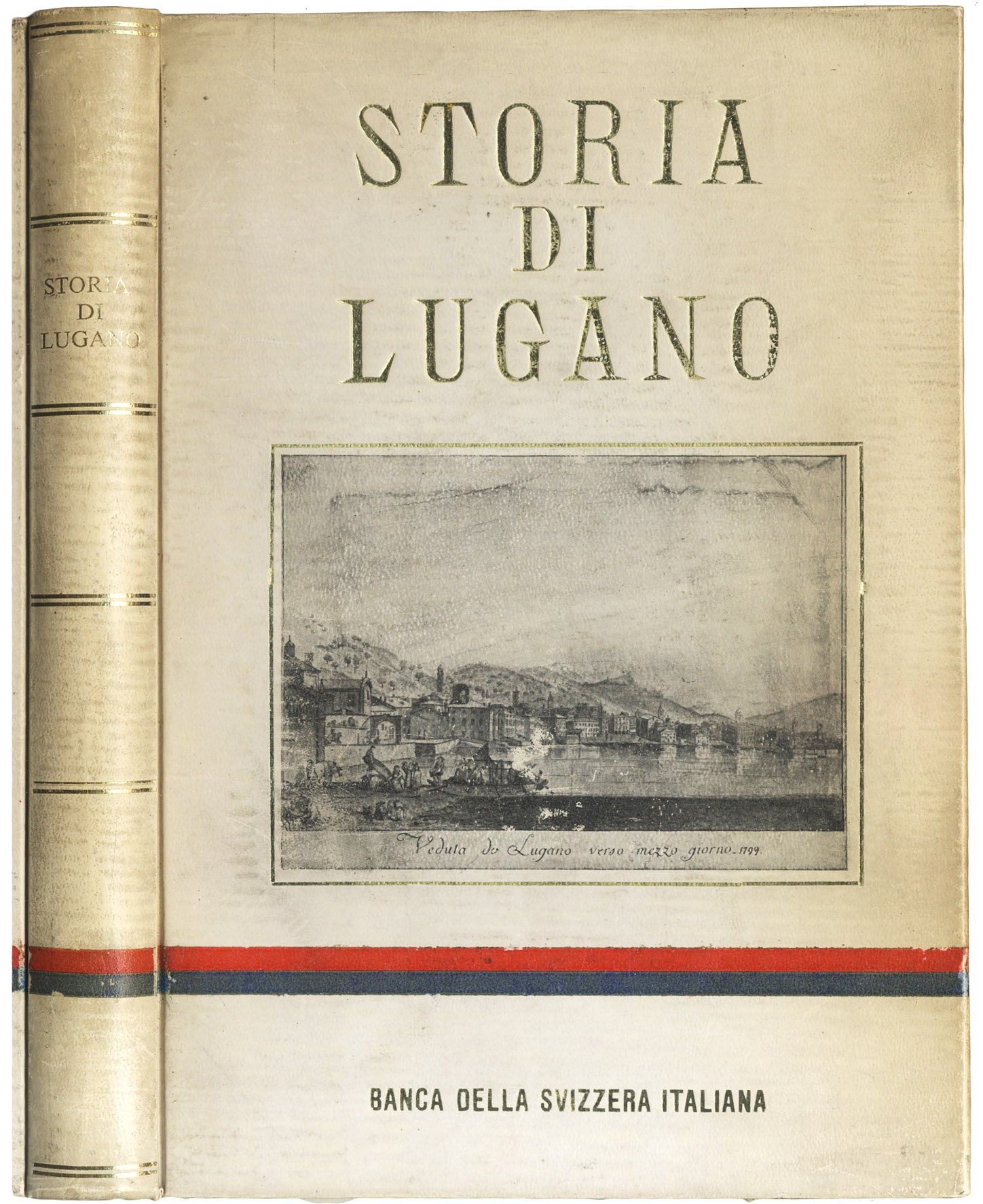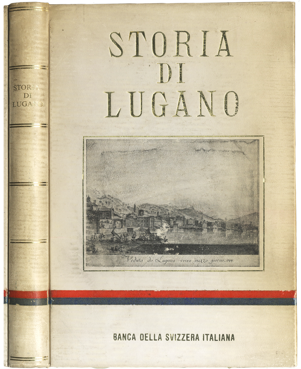 >in-8, pp. XX, 359 illustrate da 80 figure in b/n n.t. anche a p. pagina, leg. speciale della Banca della Svizzera Italiana, titolo e filetti in oro al dorso, titolo in oro e veduta storica di Lugano filettata in oro al piatto ant.; taglio sup. dorato. Seconda edizione, non comune, copia omaggio numerata (ns. 730). La prima edizione, nel 1941, fu pubblicata per celebrare i 50 anni della Società dei Commercianti di Lugano, il volume venne accolto con gran favore tanto che alla presente edizione ne seguì una terza, nel 1975, la cui presentazione editoriale a colori accompagna questo esemplare.