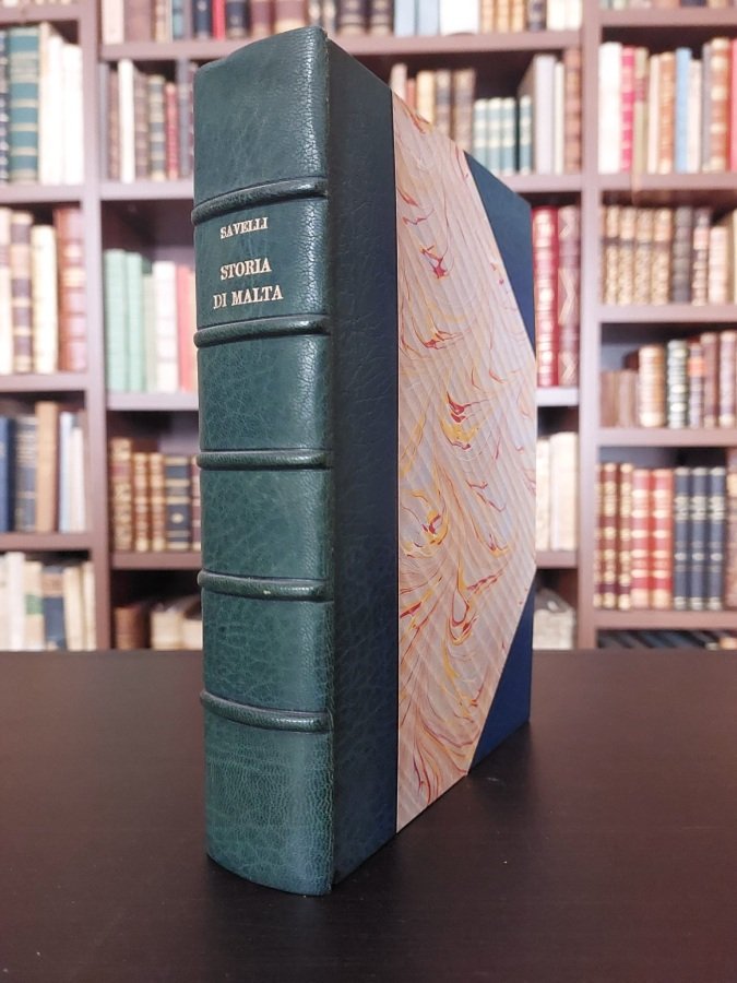 In-8° (cm. 20,4), legatura coeva d'amatore in mezza pelle blu ad angoli, dorso a nervi con titolo in oro (leggermente sbiadito), taglio superiore dorato, risguardi marmorizzati; pp. XV [1b] 538 [2] in ottimo stato (solo una lieve brunitura). Edizione originale con la prefazione di Francesco Ercole. Ottimo esemplare. (NJ2)
