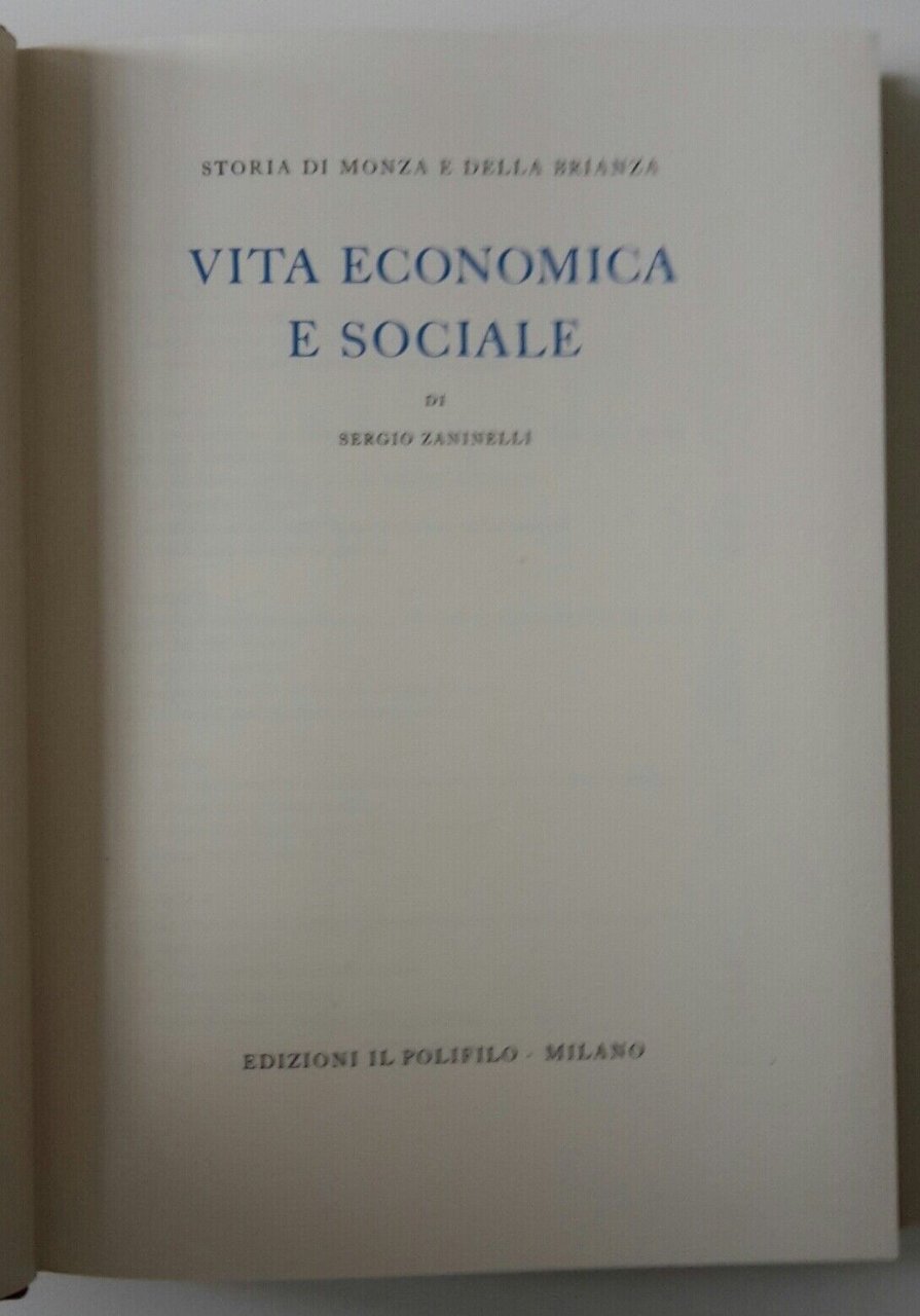 STORIA DI MONZA E DELLA BRIANZA VITA ECONOMICA E SOCIALE ED. IL POLIFILO 1969