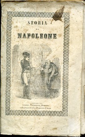 In-8°, pp. 12, brossura editoriale con vignetta xilografica e bordura ornamentale. Altra vignetta al piatto posteriore. Fioriture e gore alla brossura, ma in buono stato. Cronologia della vita di Napoleone seguita da cenni sulla trslazione delle sue ceneri da Sant'Elena a Parigi e da cenni sulla famiglia Bonaparte.