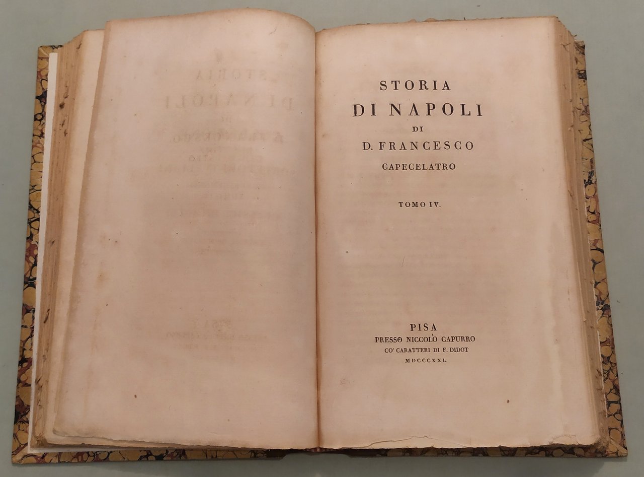 4 volumi in 2 tomi in 8vo; pp.IV,352; 292; VII,186, 2 n.nn.;271. Esemplare su carta forte. Lievi tracce di umido. Mezza pelle coeva, titolo e fregi in oro ai dorsi.