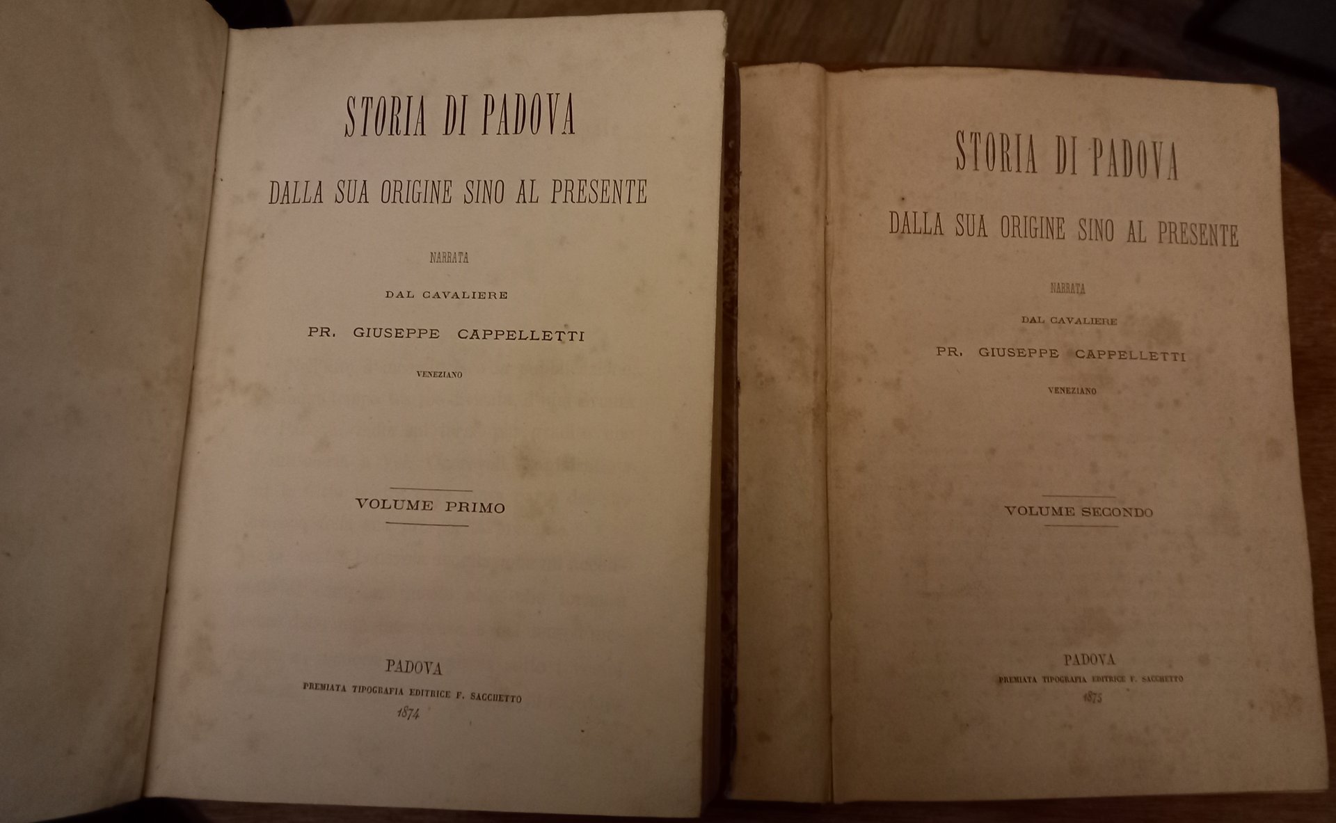 Storia di Padova dalla sua origine sino al presente narrata dal cavaliere Pr. Giuseppe Cappelletti veneziano. Tomo primo-secondo.