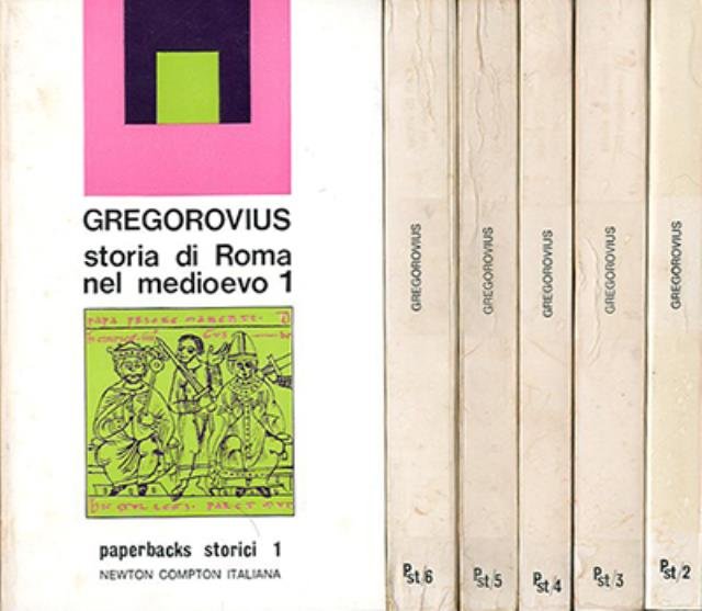 6 v. (553; 460; 530; 366; 393; 477 p.) ; 19 x 12 cm. Paperbacks storici. La «Storia della città di Roma nel Medioevo» è lo studio più famoso di Ferdinand Gregorovius , opera monumentale iniziata nel 1856 e terminata nel 1871. «Roma è il demone contro cui lotto. Se vinco la battaglia, se cioè riesco a trasformare questo grandioso essere universale in una visione penetrante e in una trattazione artistica, allora sarò anch'io un trionfatore», annota l'autore il 30 aprile 1856. A cura e traduzione di Vittoria Galvani e Pia Micchia. Titolo originale dell'opera: «Geschichte der Stadt Rom im Mittelalter : vom 5. bis zum 16. Jahrhundert». Brossura editoriale, coperta illustrata a colori in cartoncino flessibile plastificato. Titolo impresso al piatto e al dorso, qualche leggero segno del tempo alla coperta, per il resto libri integri. Codice libreria 6467.
