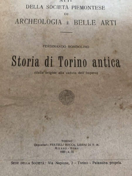 STORIA DI TORINO ANTICA DALLE ORIGINE ALLA CADUTA DELL'IMPERO FERDINANDO RONDOLINO BOCCA 1930